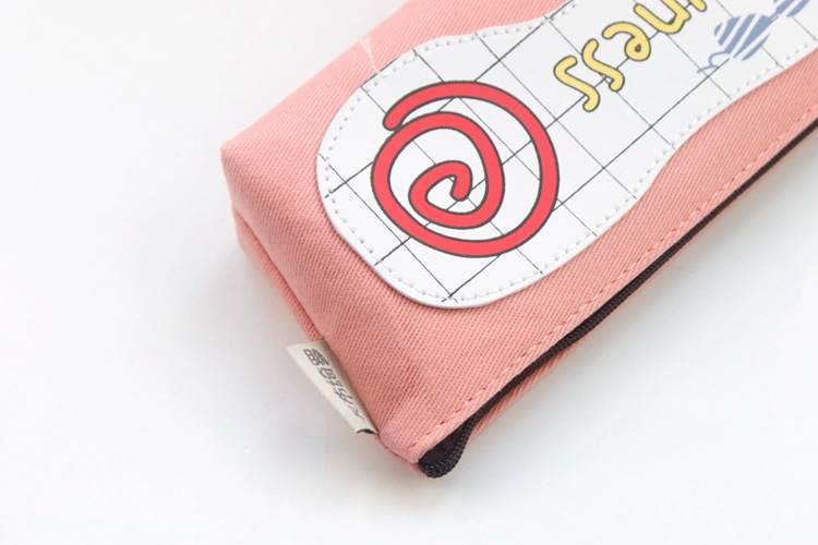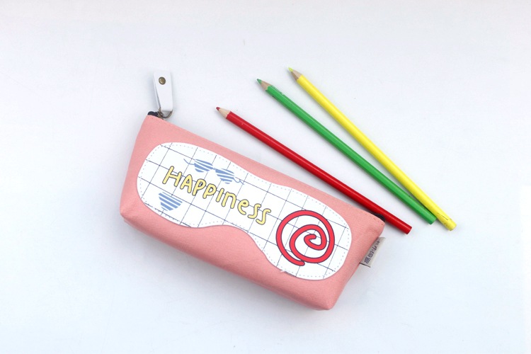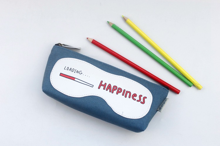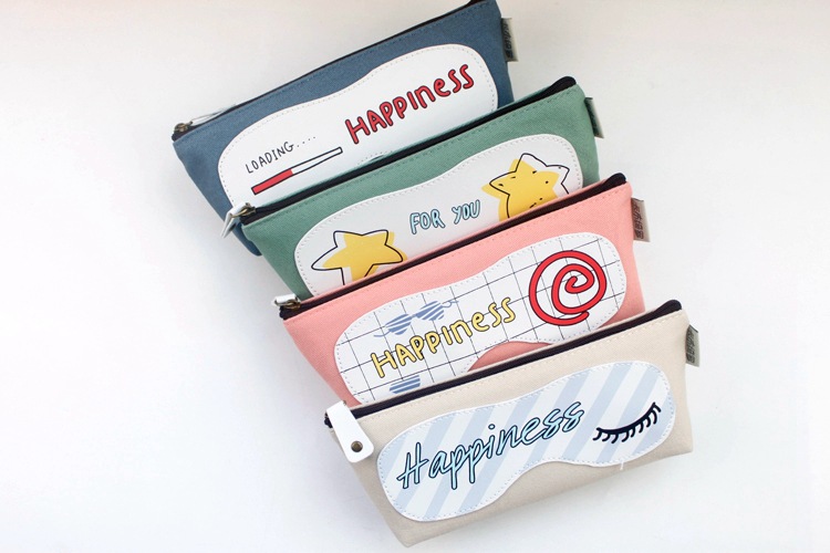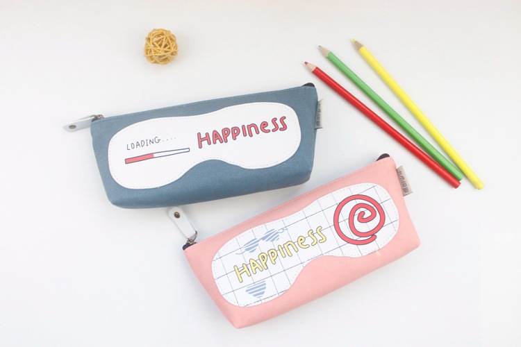 Girls Cute Happiness For You Canvas Pencil Case Stationery Cosmetic Make Up Bag Pen Storage Pouch