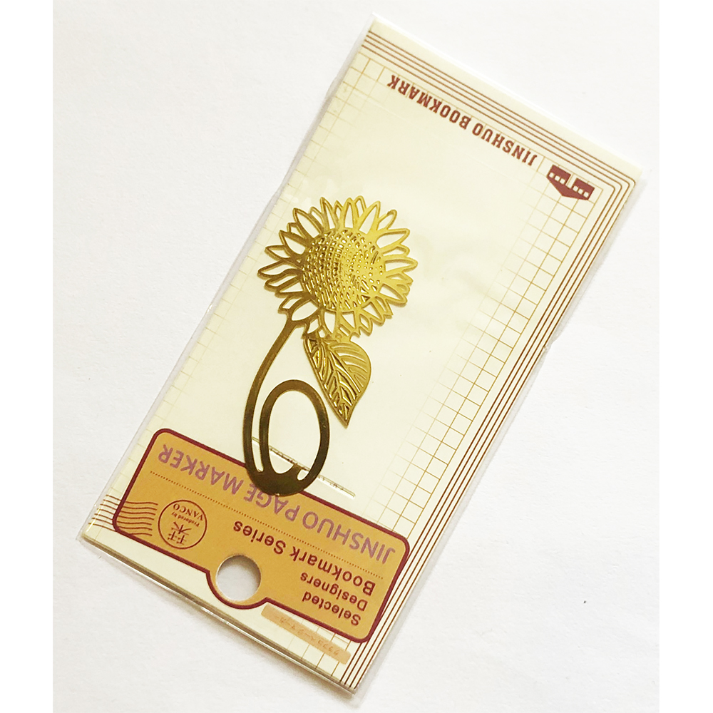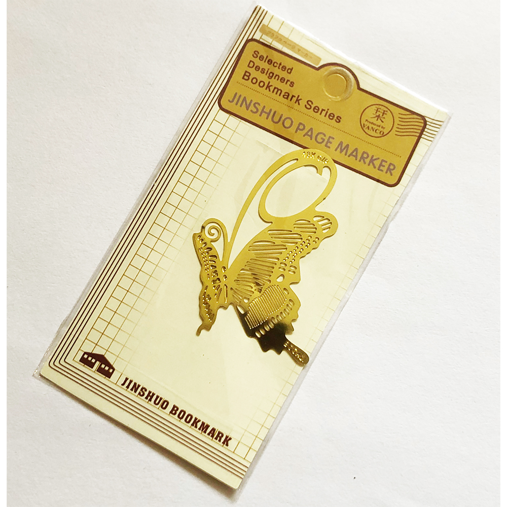 Very cute gold colour metal bookmarks in novelty designs of butterfly, rose, sunflower, grapes, leaves, bird feather, animals, and many more.