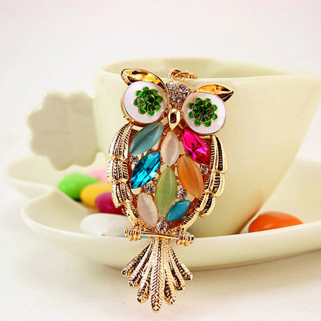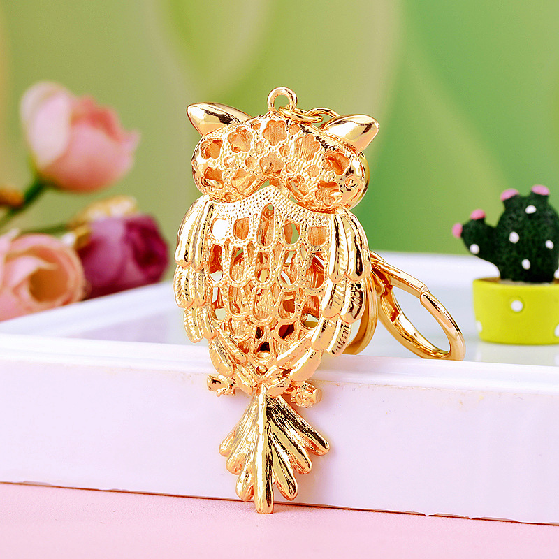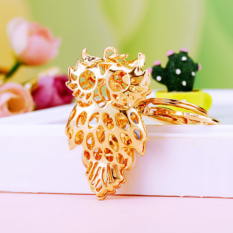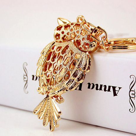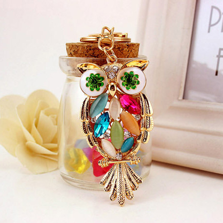 Gold Owl Bird Animal Crystal Diamante Rhinestone Bag Charms Handbag Keyrings Pendant Key Chain