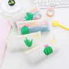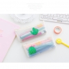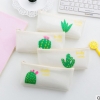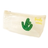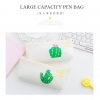 Green Cactus Pink Flowers Cute Floral White Pencil Case Makeup Bag Pen Pouch