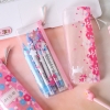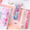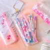 Japanese Pink Cherry Blossom Flowers White Cat Clear Pencil Case Cosmetic Bag