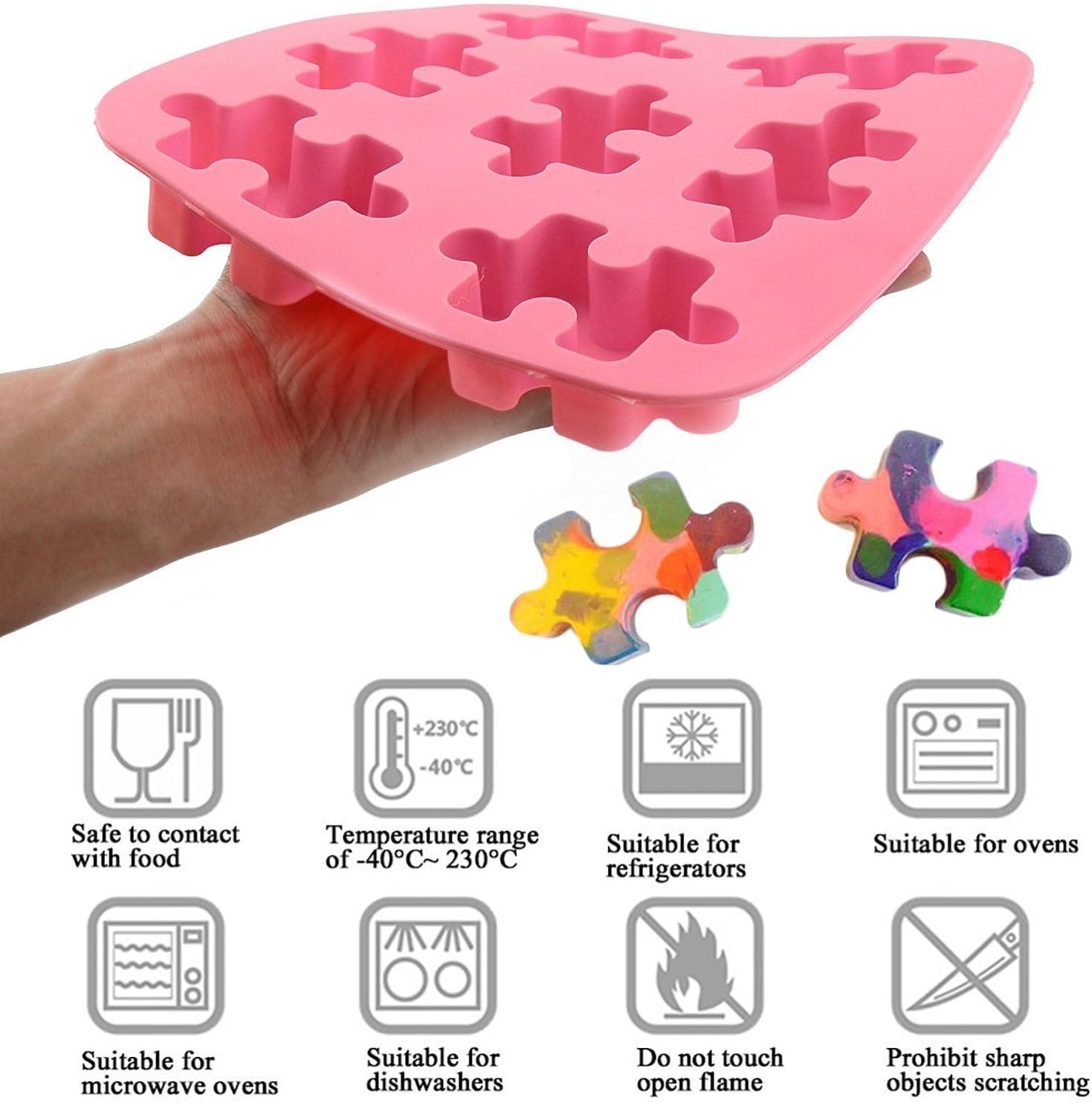 Details:Jigsaw Puzzle Shapes Pink Silicone Mould Chocolate Fondant Jelly Ice Cube Mold