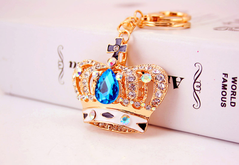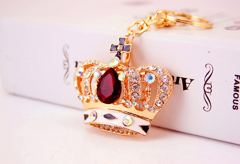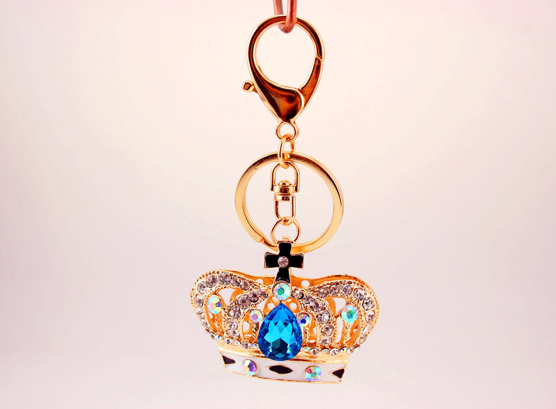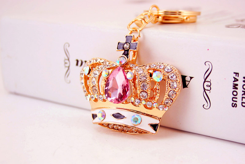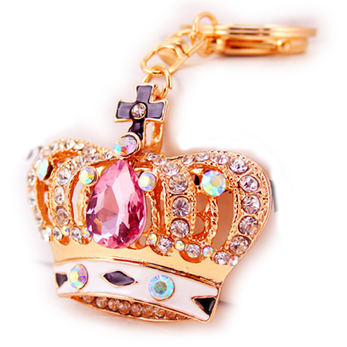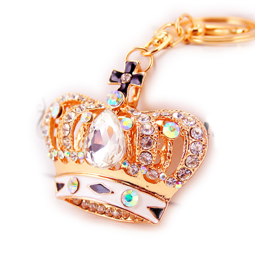 King Queen Royal Crown Crystal Diamante Bag Charms Handbag Keyrings Pendant