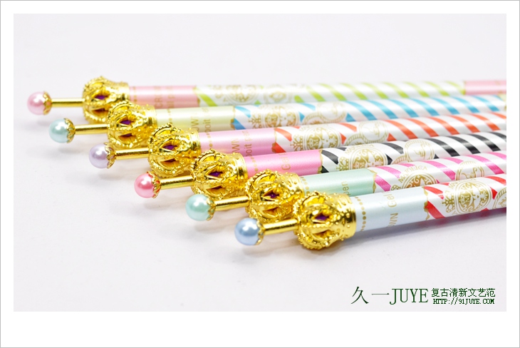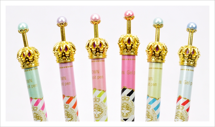 Elegant ballpoint gel pens with gold kings / queens crown.