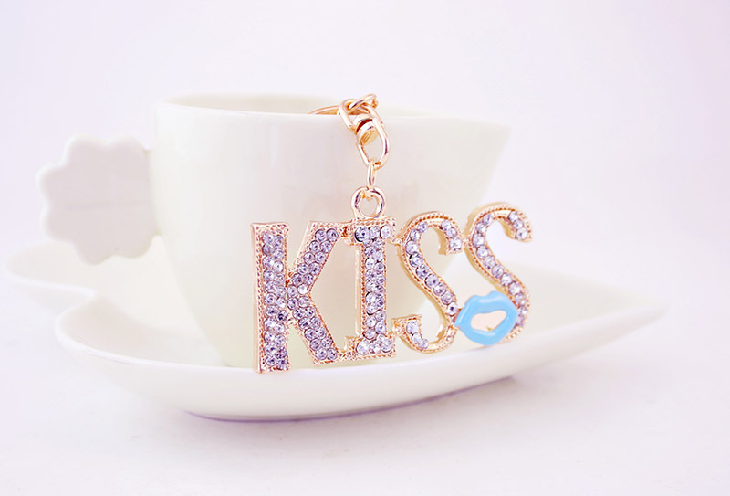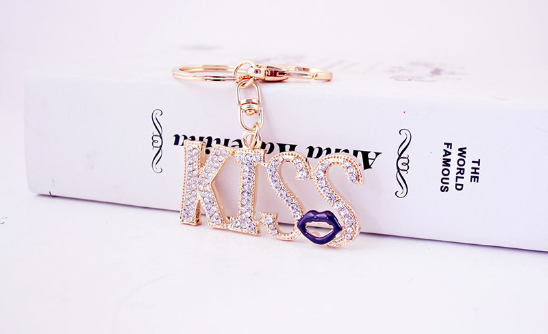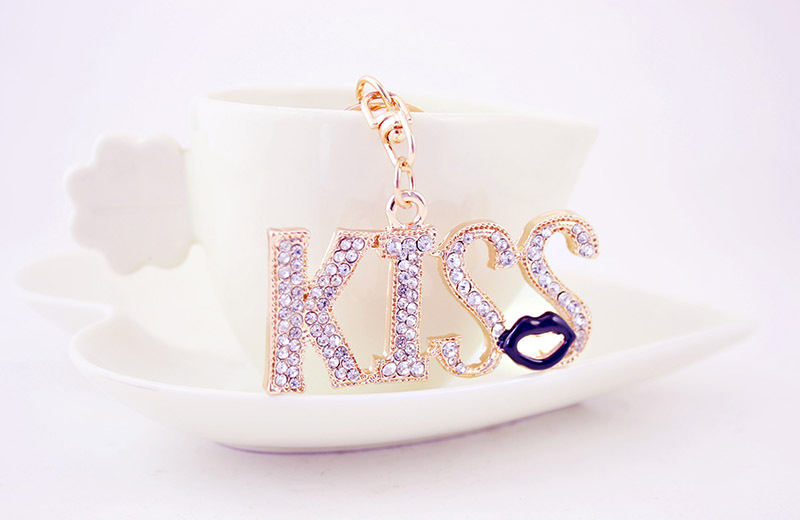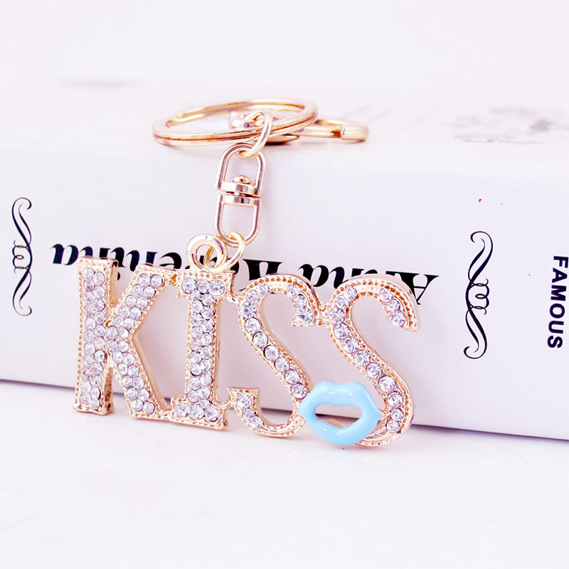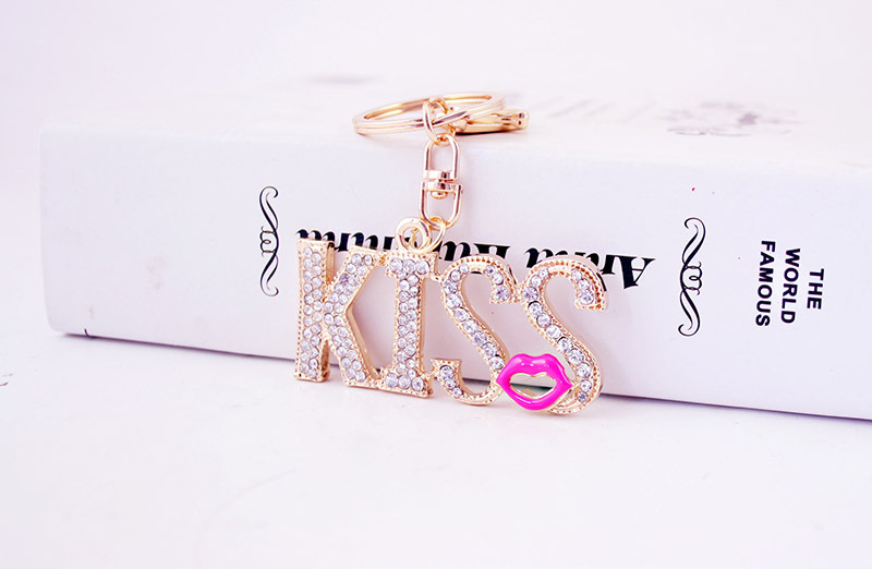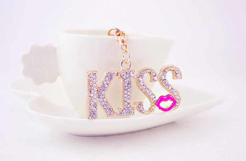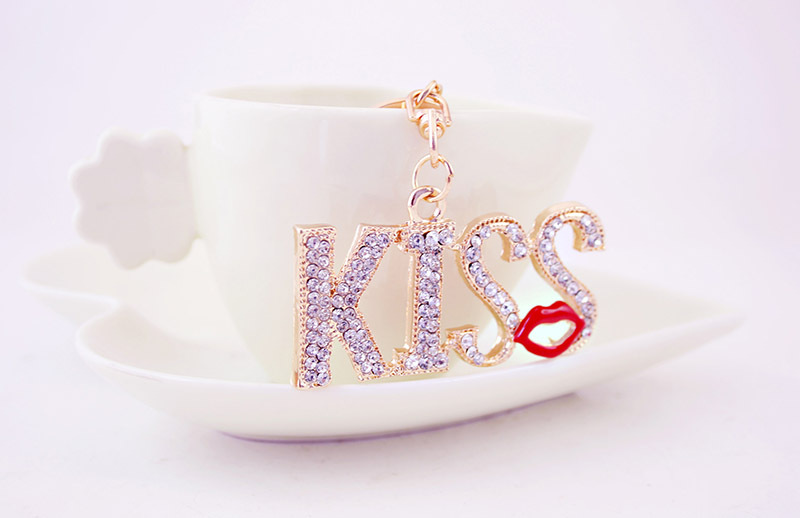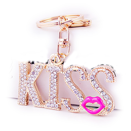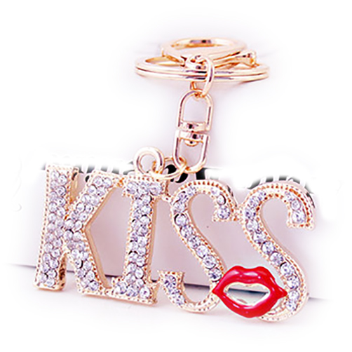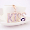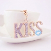 KISS Red Lips Crystal Diamante Bag Charms Handbag Keyrings Pendant Key Chain