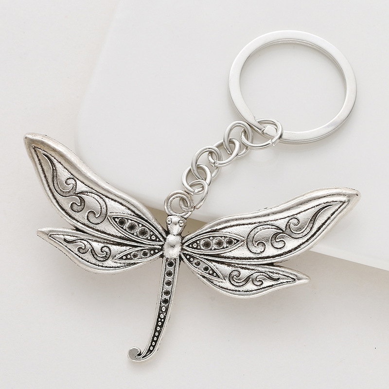 Large Antiqued Silver Dragonfly Keyring Nature Animal Insect Lovers Gift