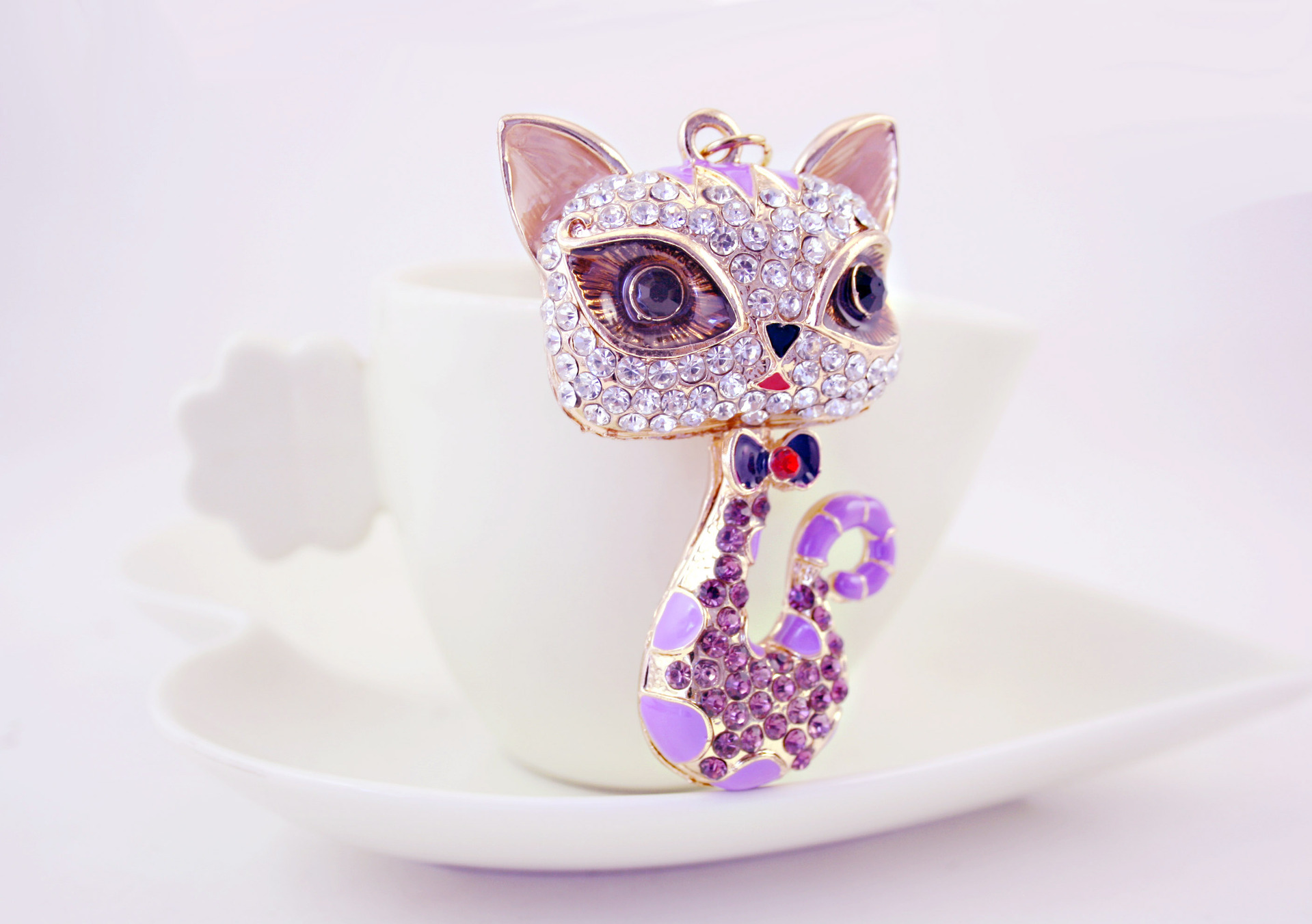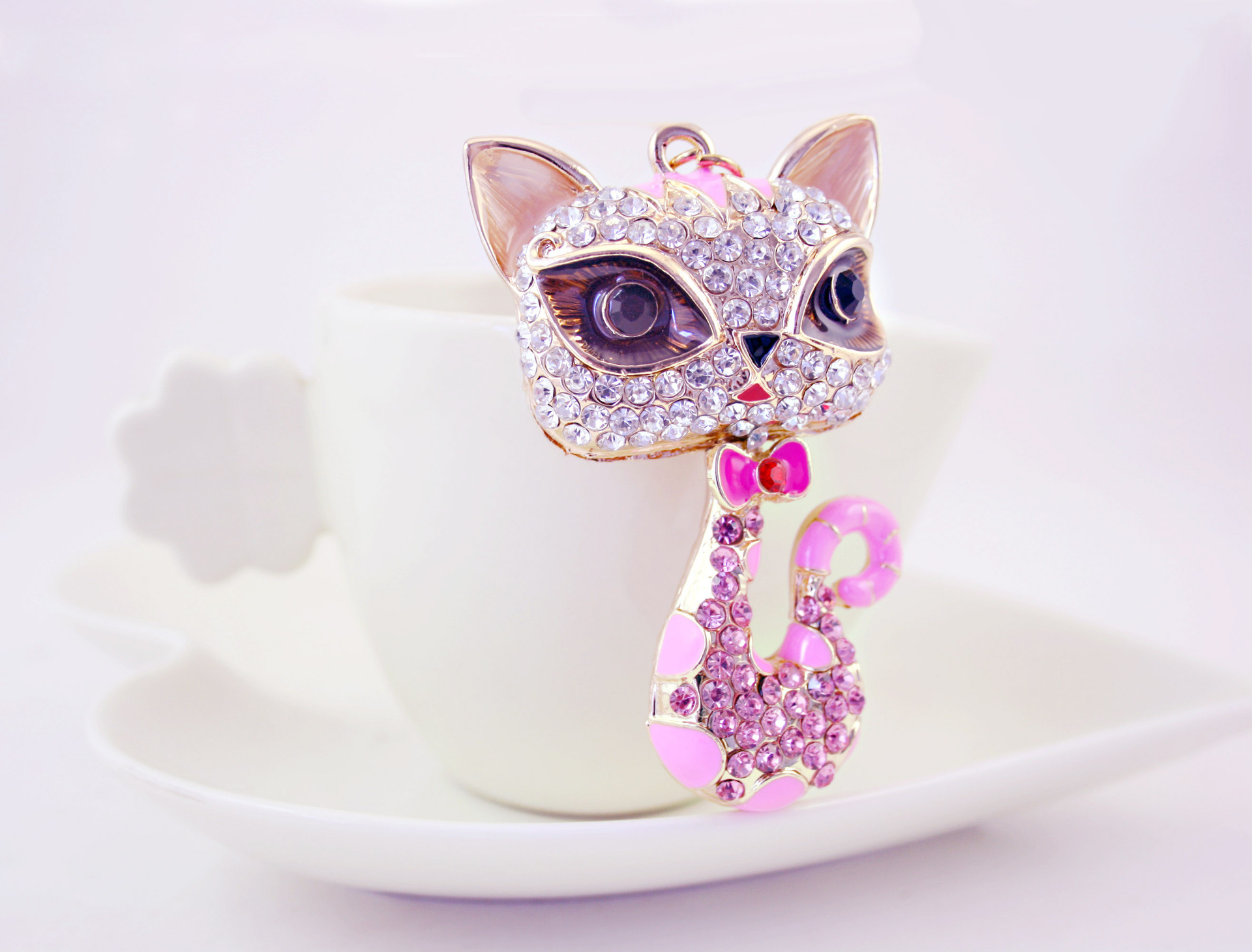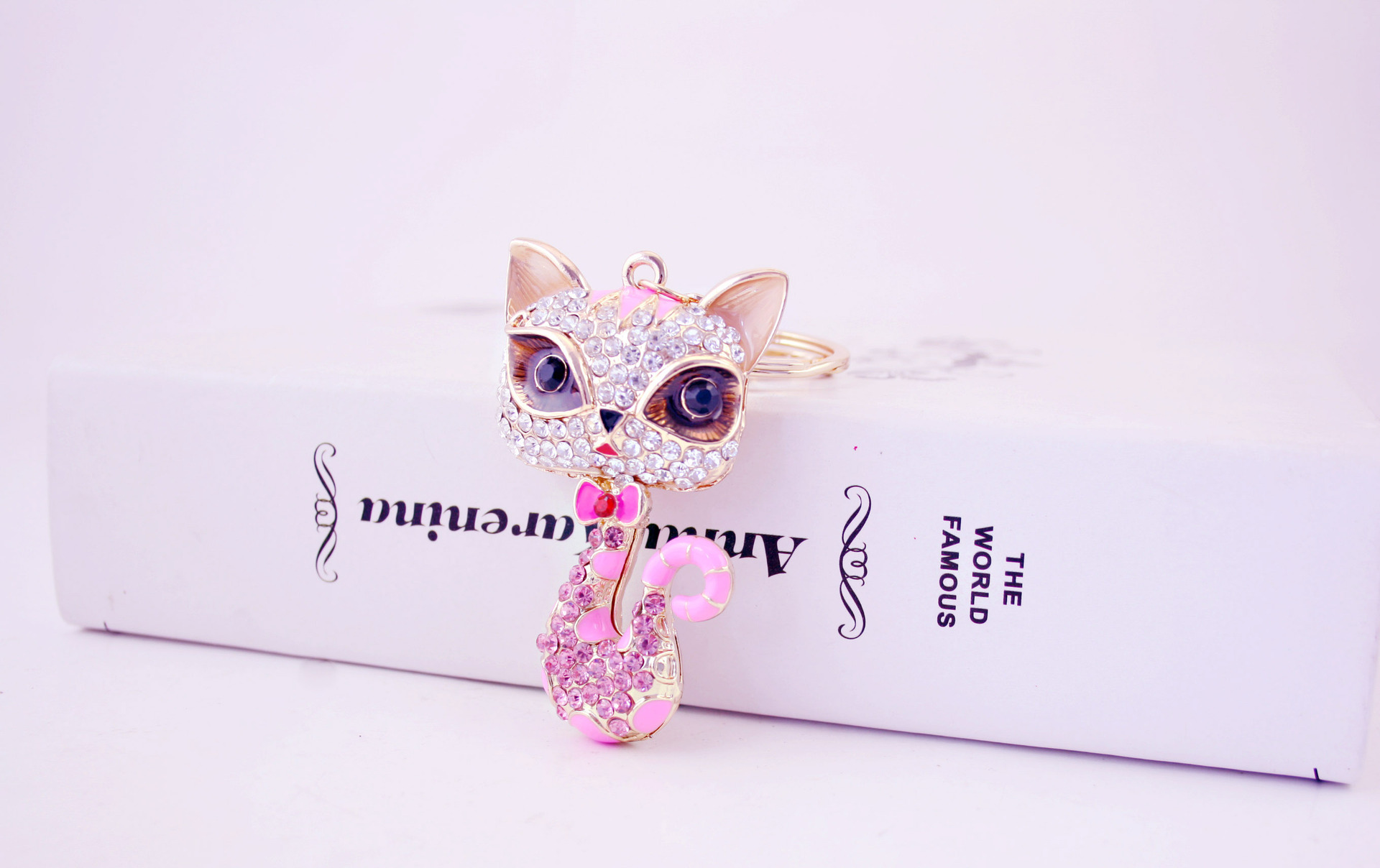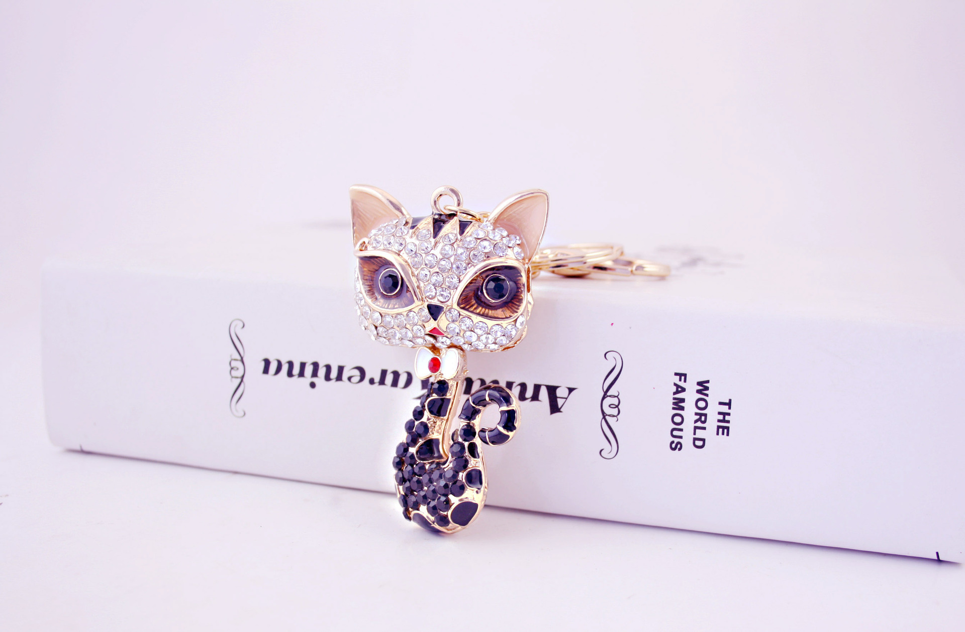 Details:Large Fashion Kitten Cat Crystal Diamante Bag Charms Handbag Keyrings Pendant