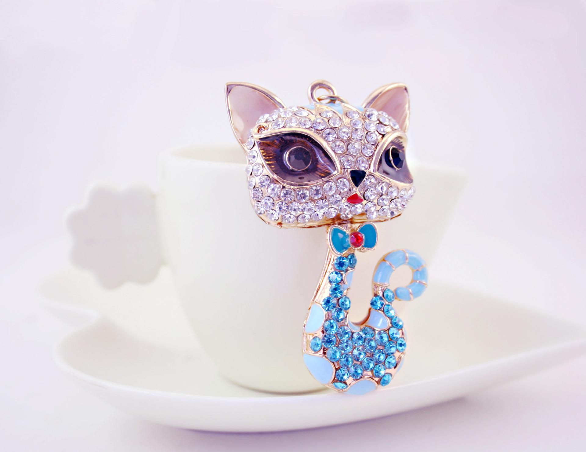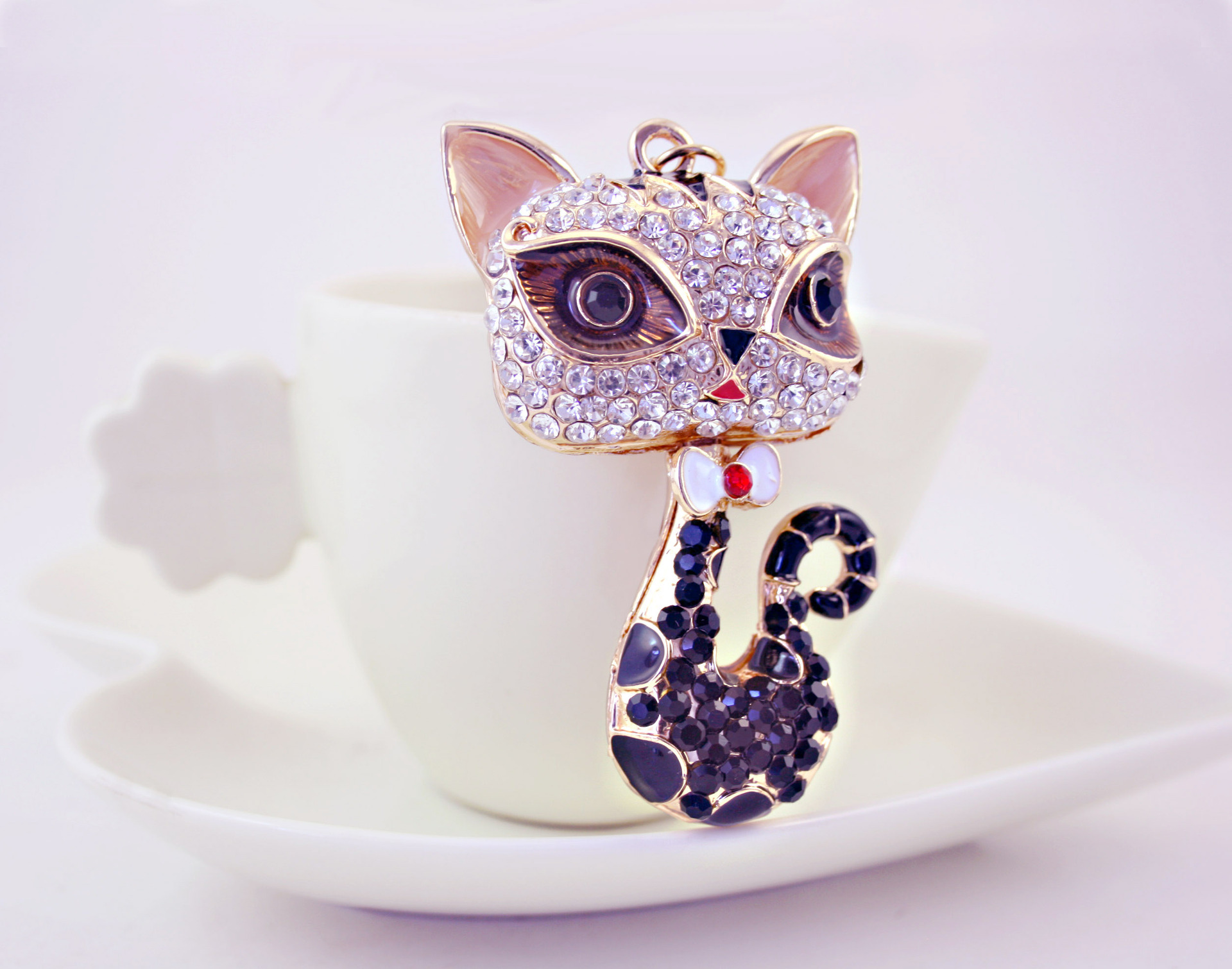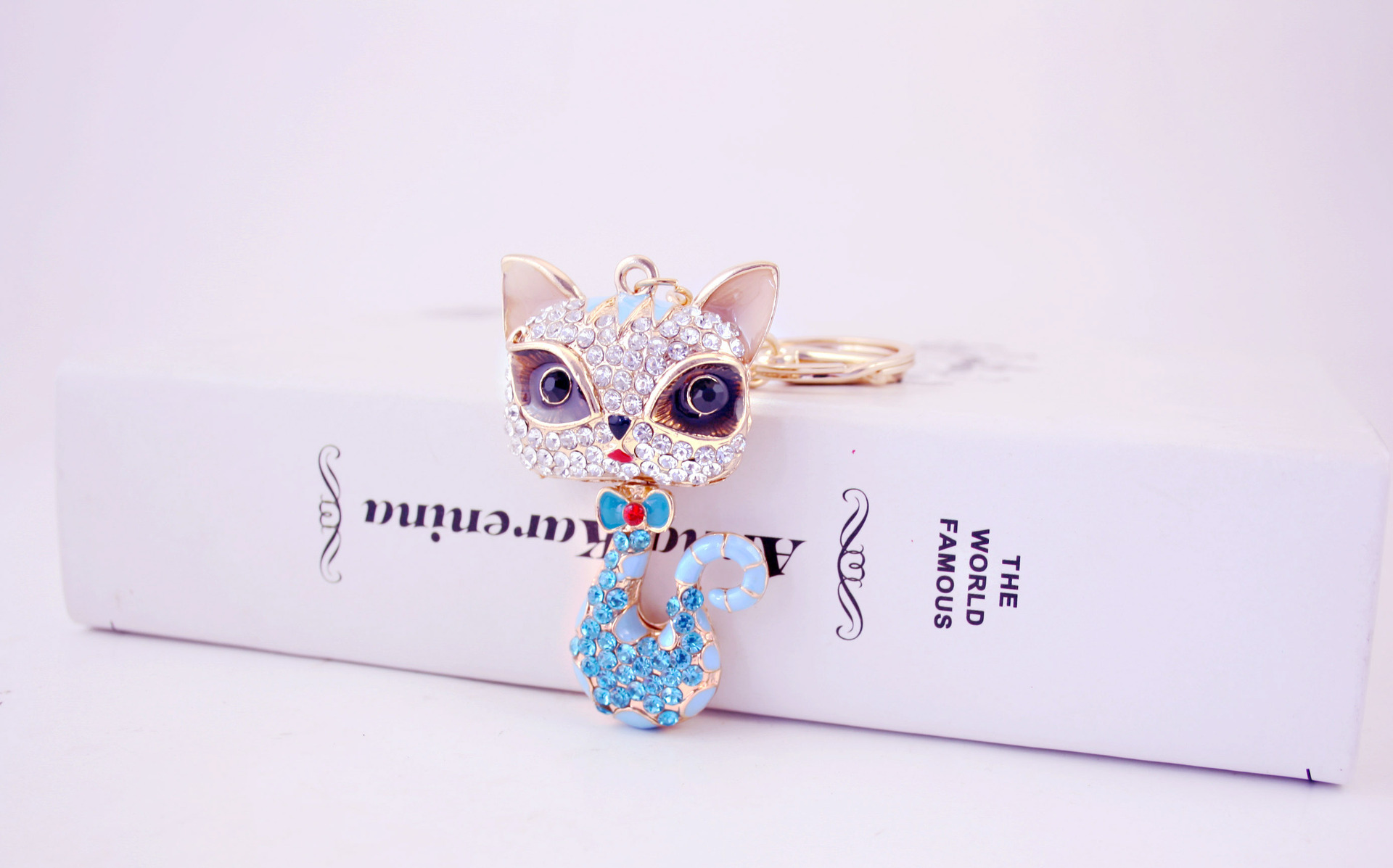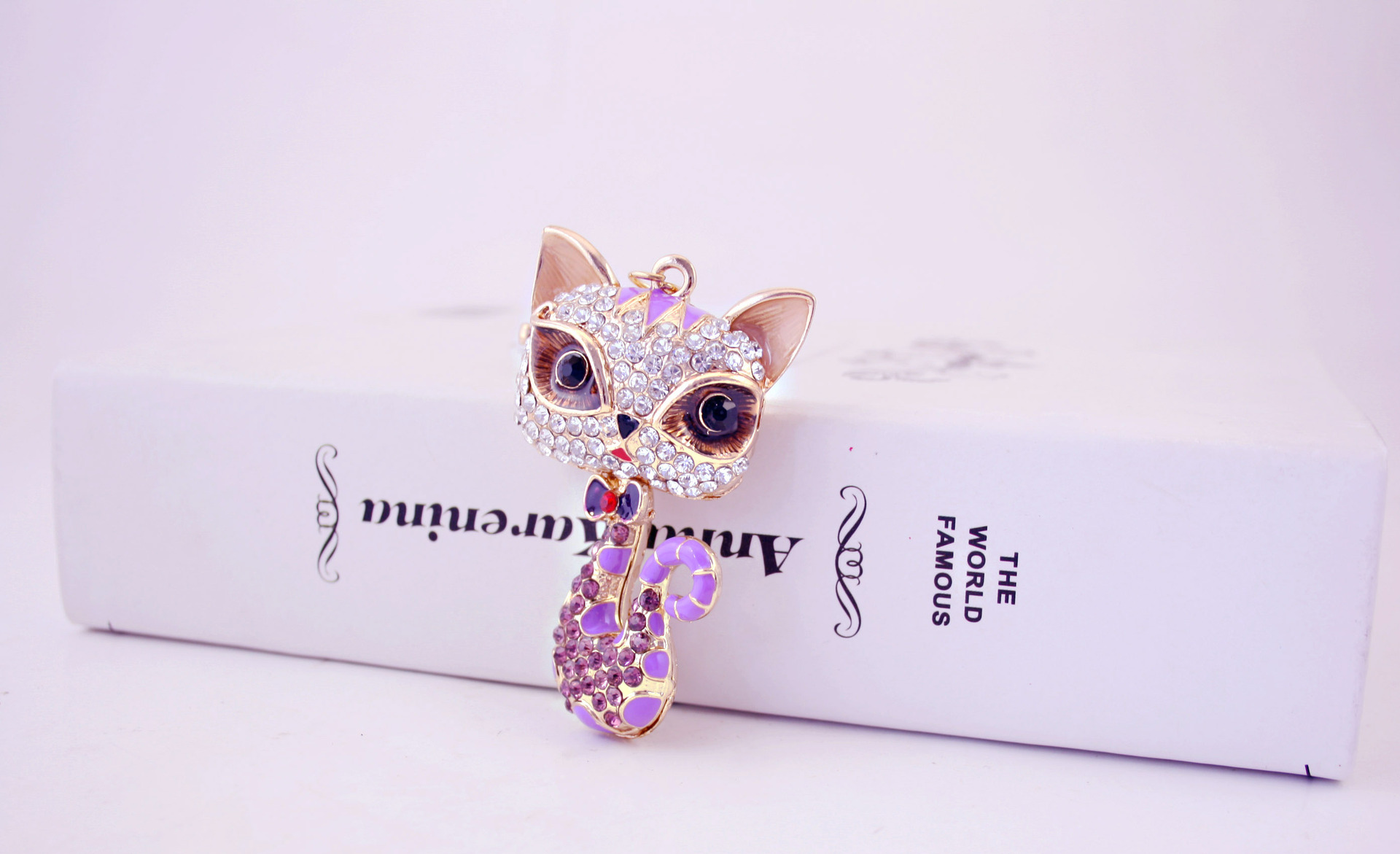 Details:Large Fashion Kitten Cat Crystal Diamante Bag Charms Handbag Keyrings Pendant