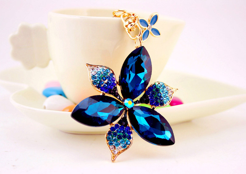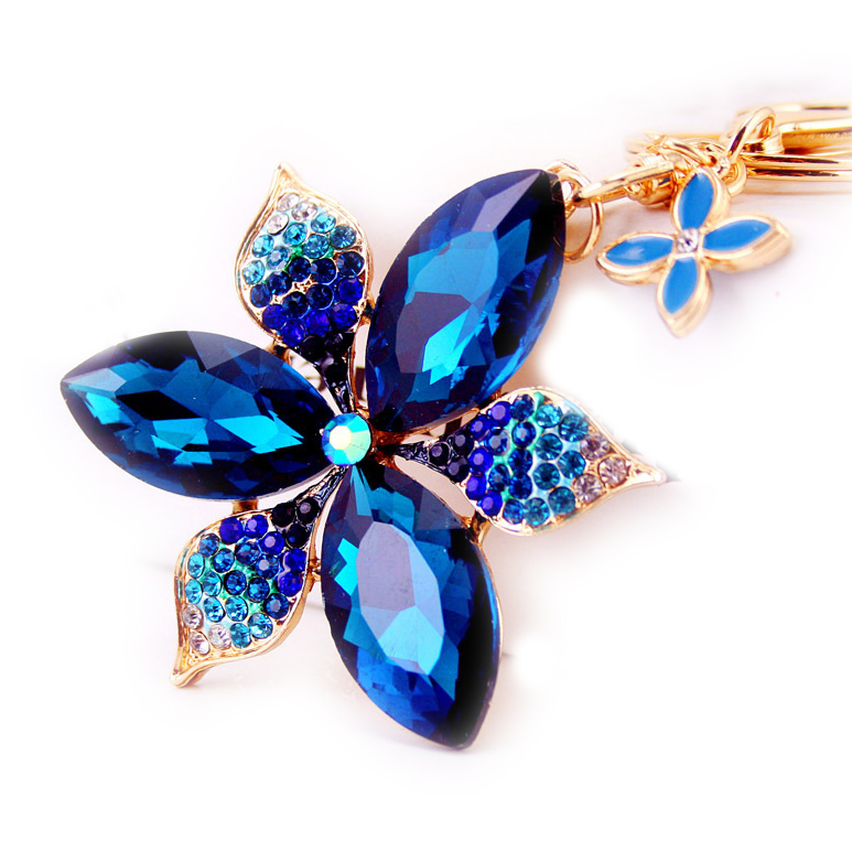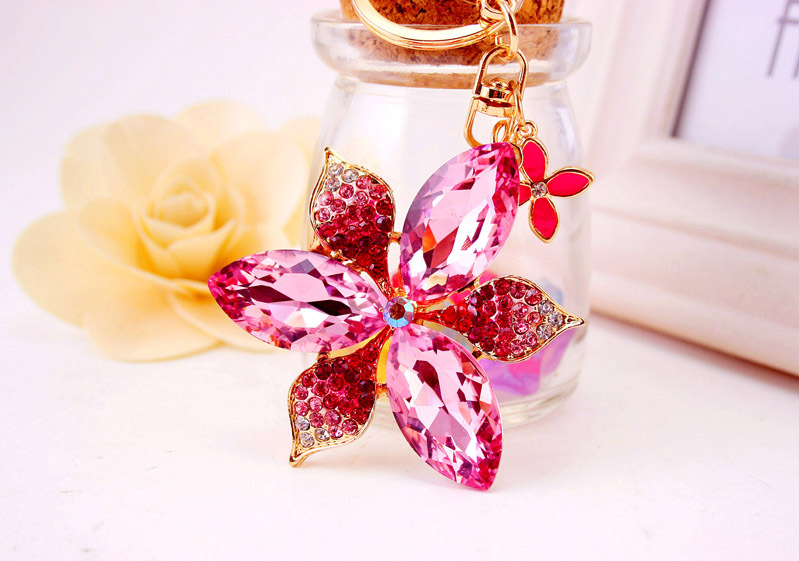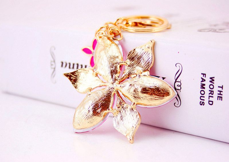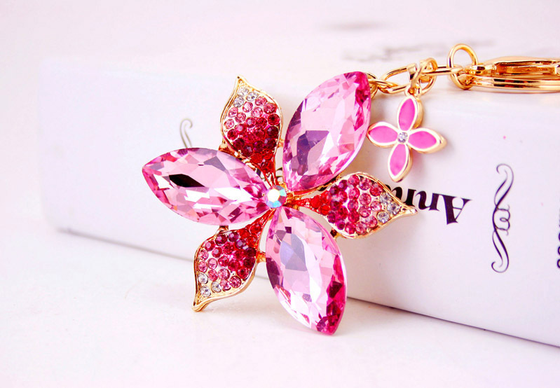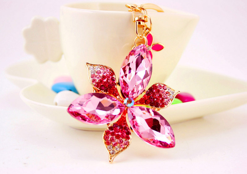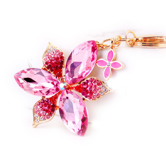 Large Lily Flower Crystal Diamante Rhinestone Bag Charms Handbag Keyring Pendant