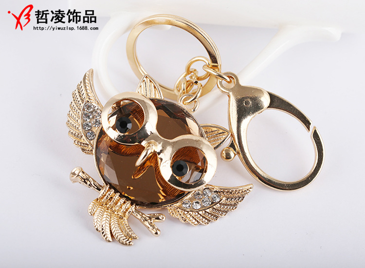 Large Owl Crystal Diamante Rhinestone Bag Charms Handbag Keyrings Pendant Key Chain