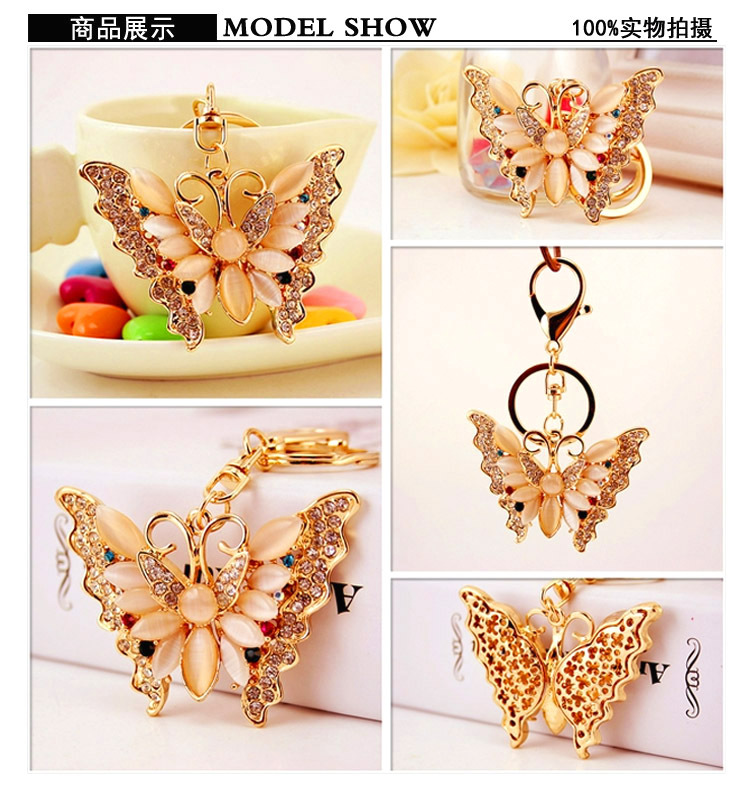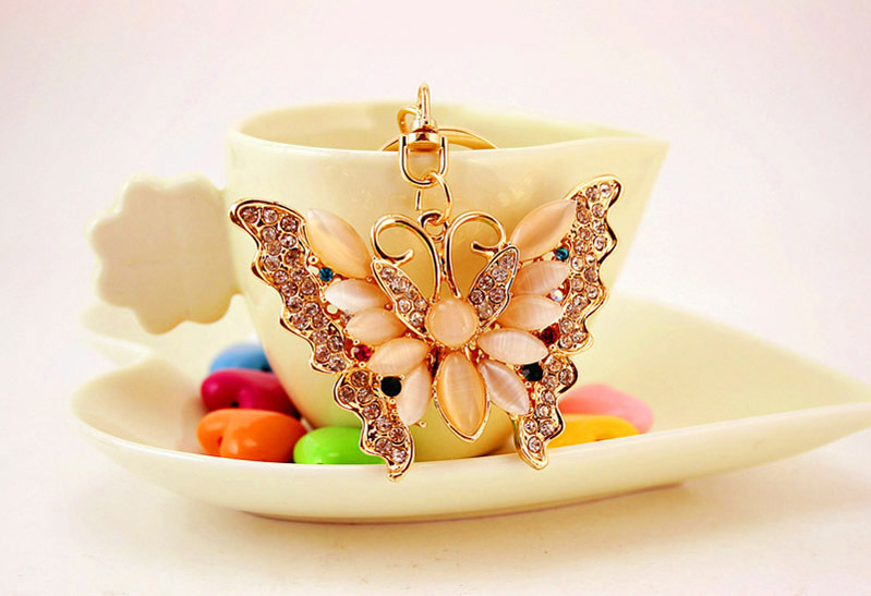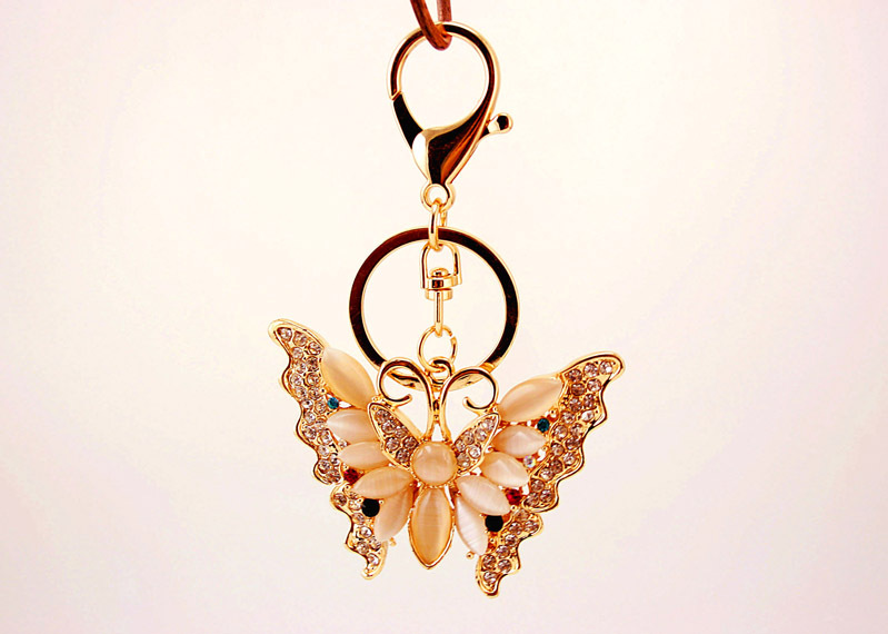 Large White Butterfly Crystal Diamante Rhinestone Bag Charms Handbag Keyring
