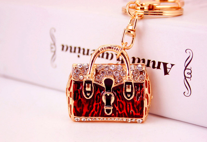 Classic handbag shaped bag charm with key chain, available in different colours.