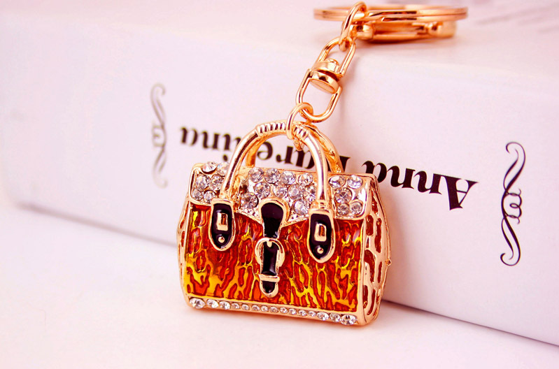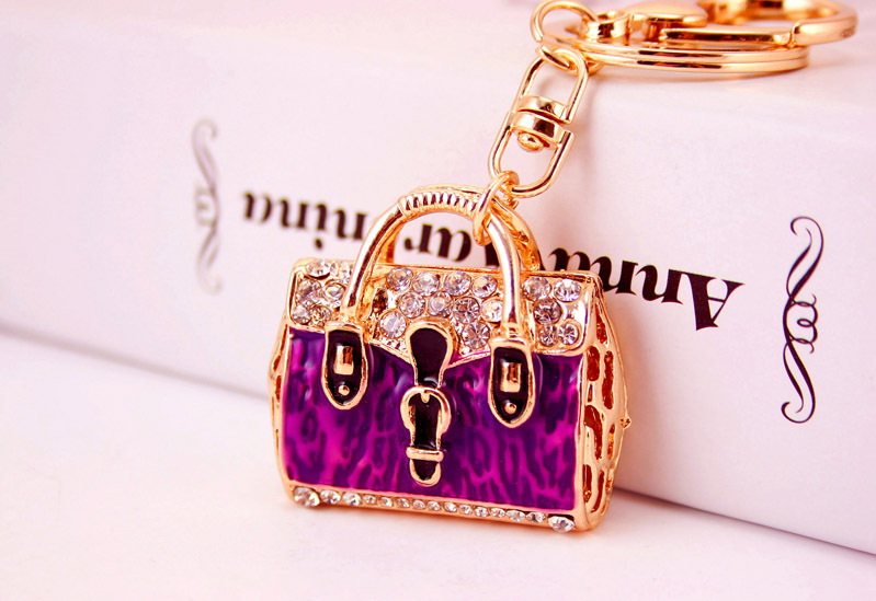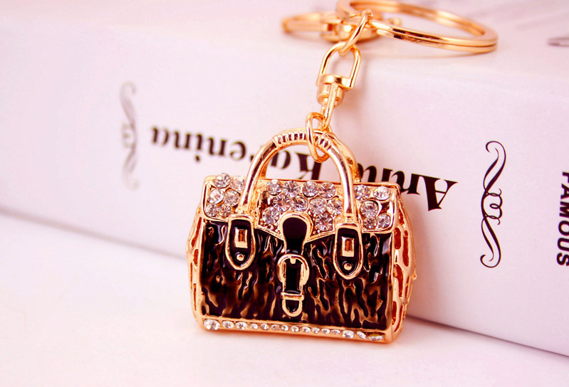 Leopard Print Handbag Shaped Crystal Diamante Rhinestone Bag Charms Handbag Keyrings Pendant
