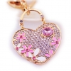 Love Heart Cherry Blossom Flowers Crystal Diamante Bag Charms Handbag Keyrings