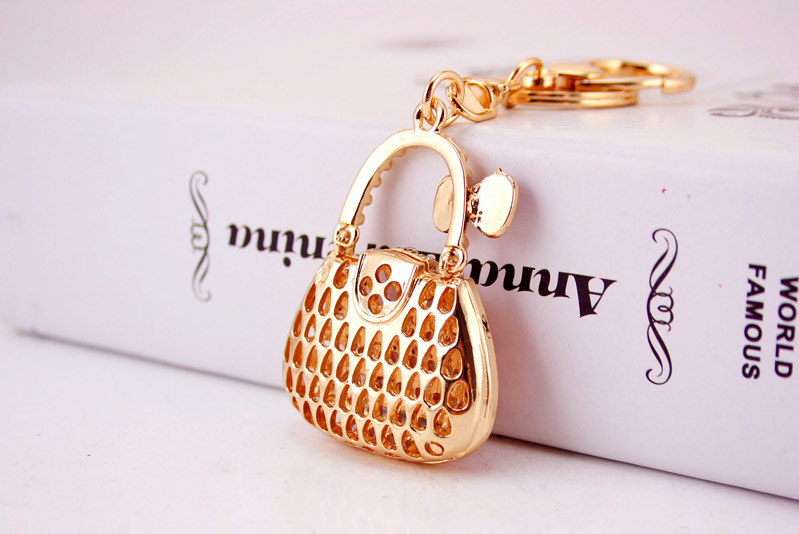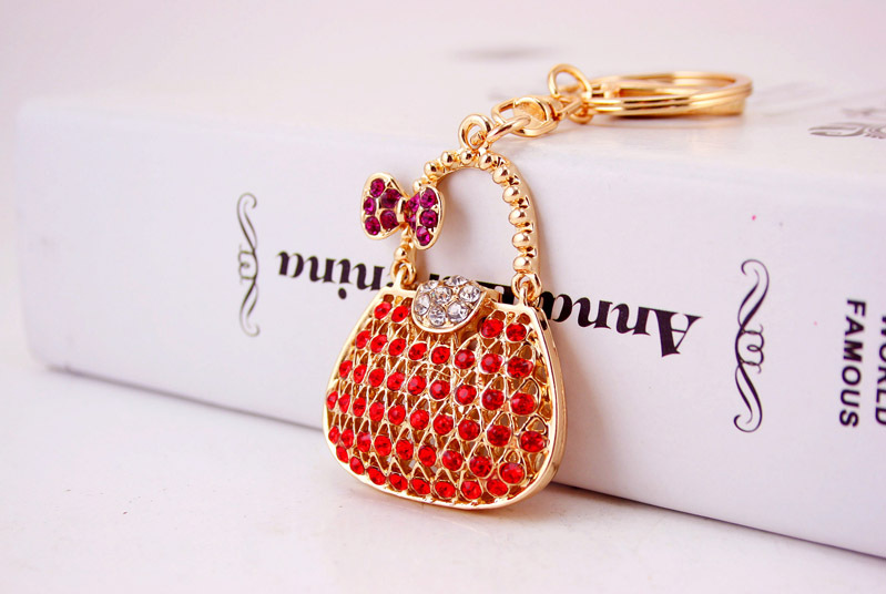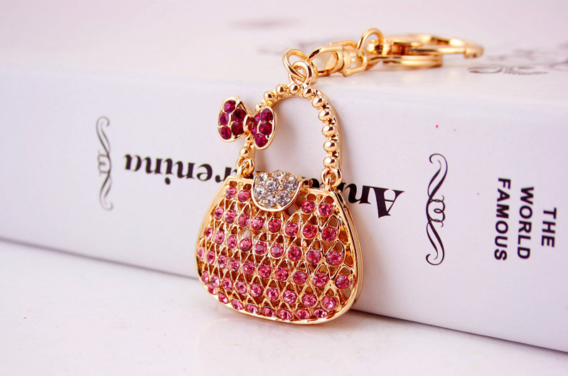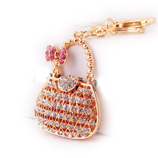 Lovely Handbag Shape Bow Knot Crystal Diamante Bag Charm Keyring Pendant