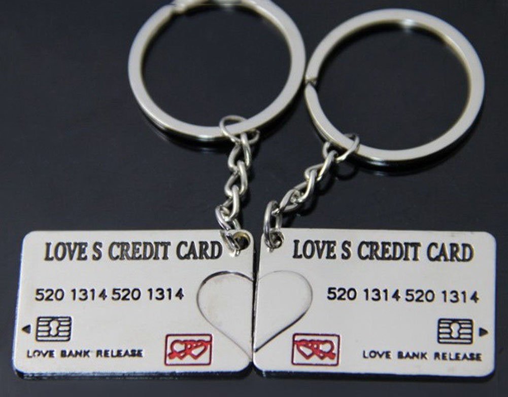 Lovers Credit Card Couple Keyrings Set Silver Metal Puzzle Keyrings Key Chains