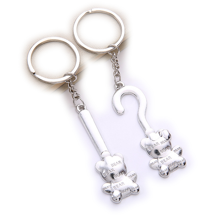 Mr and Mrs Bear Silver Couple Keyrings Lovers Puzzle Metal Keyring Set A Pair