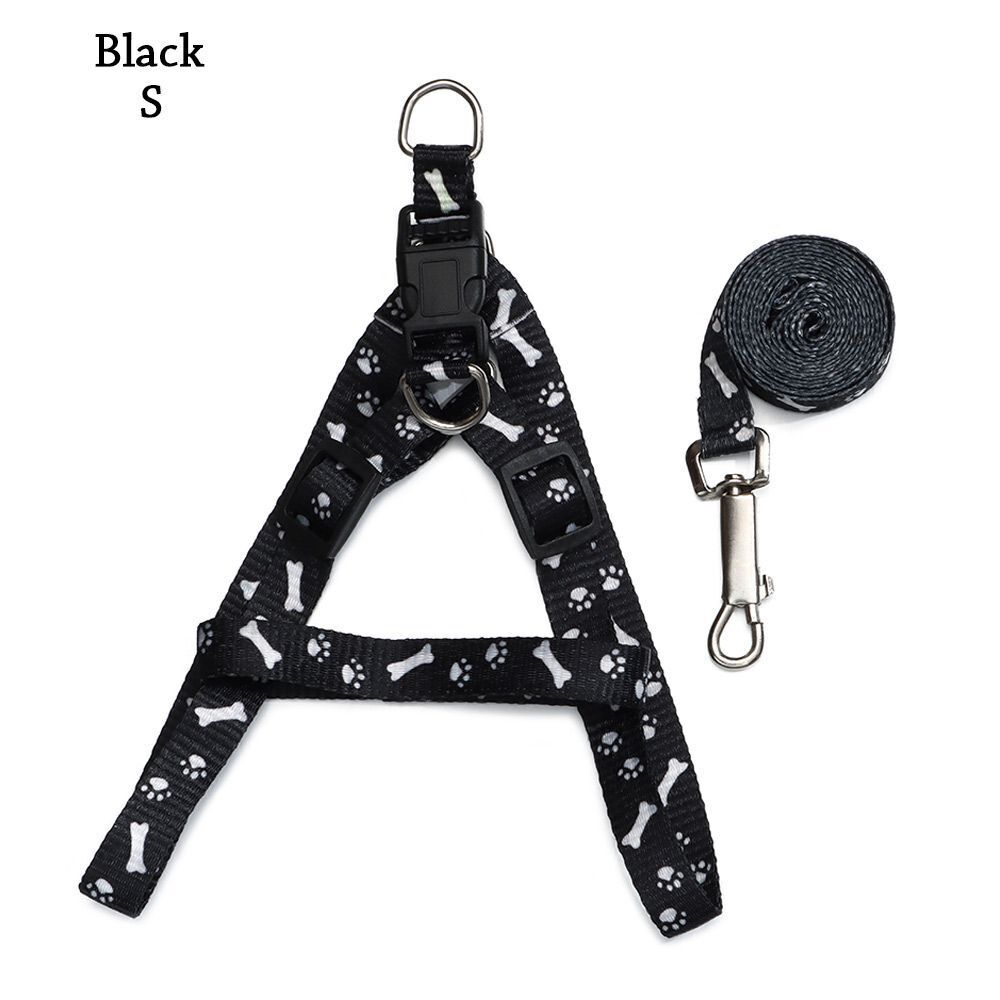 Paws Bones Patterned Print Small Dog Cat Pet Adjustable Harness Leash Lead Set