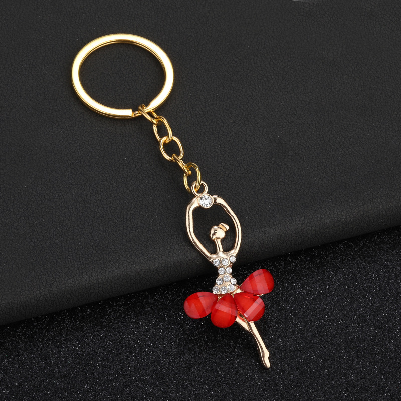 Pink Ballerina Dancing Girl Sparkling Crystal Diamante Keyring Bag Charm