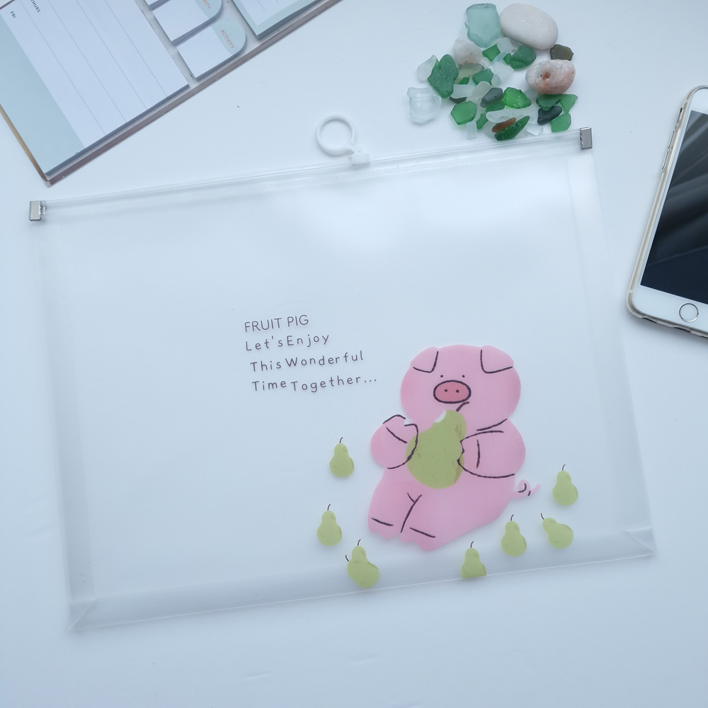Details:Pink Piglets Fashion Animals A4 Plastic Document Wallets Zipper File Folder Zig Bags