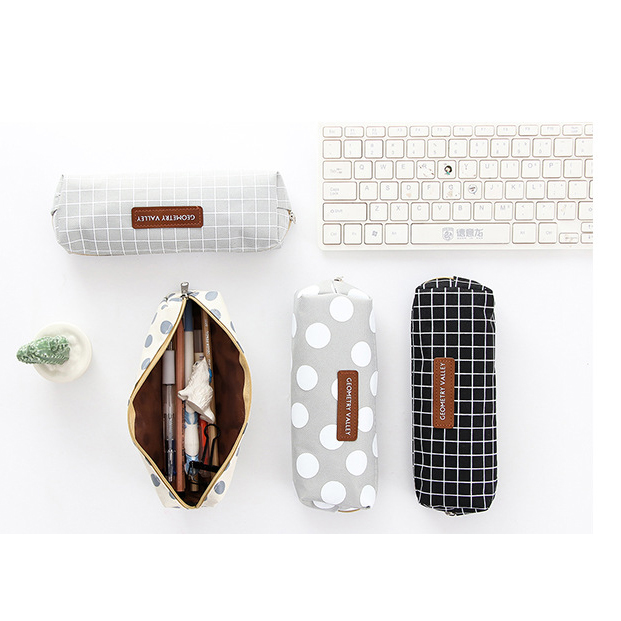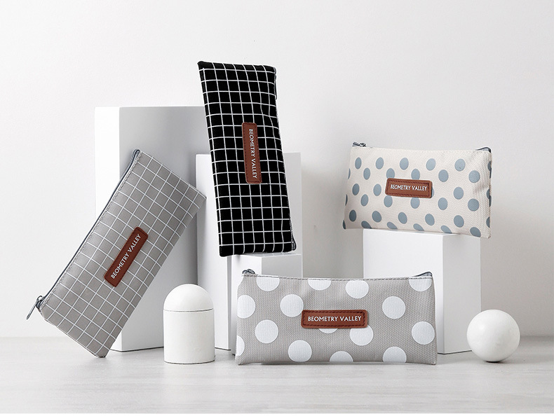 Details:Polka Dots Grid Patterned Classic Canvas Pencil Case Cute Cosmetic Makeup Bags