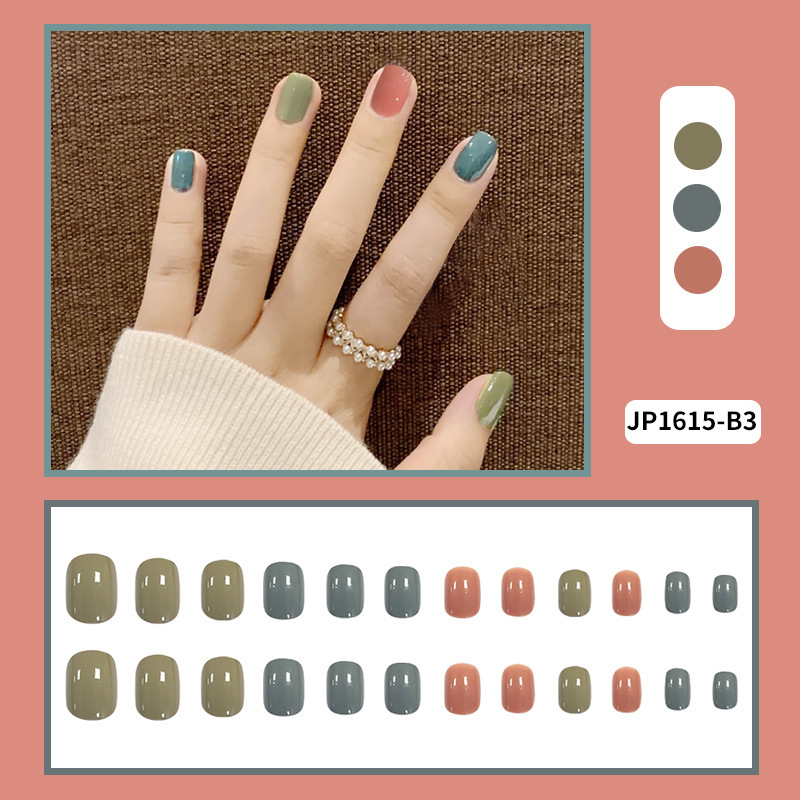 Pure Color False Nail Art Tips Full Cover Fake Nails With Glue