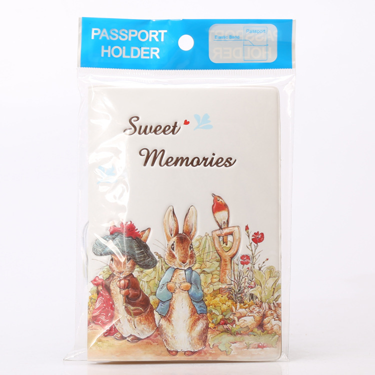 Details:Rabbits In Garden PU Leather Removable Wristlet Strap Cute Passport Cover Travel ID Holder