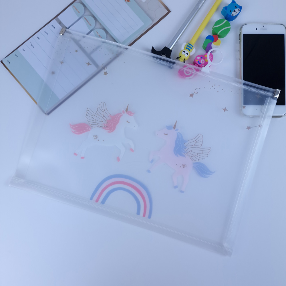 Rainbow Unicorn Fashion A4 Zipper Document Wallets File Folders