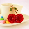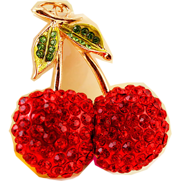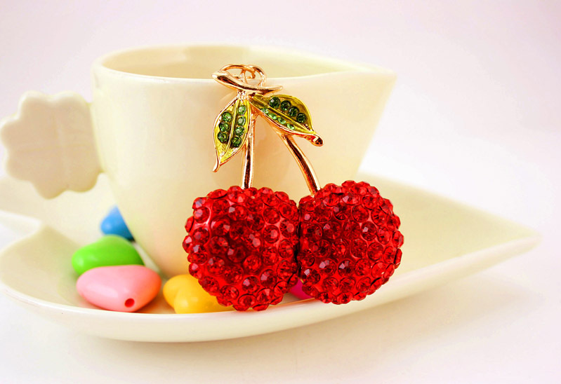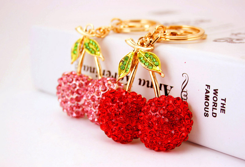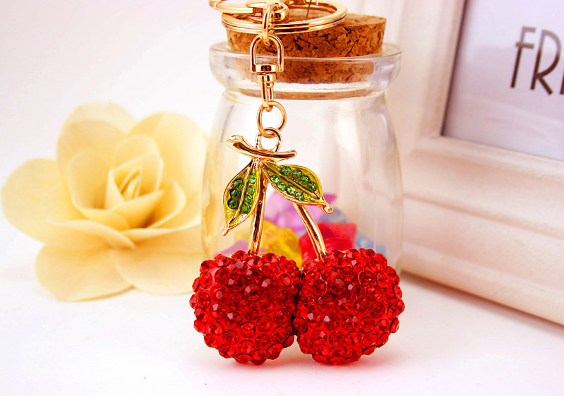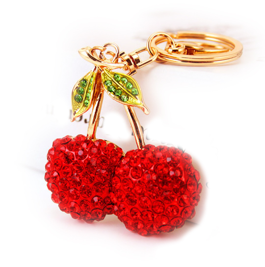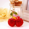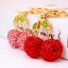 Red Cherry Fruit Sparkling Crystal Diamante Rhinestone Bag Charms Handbag Pendant Keyring Key Chain