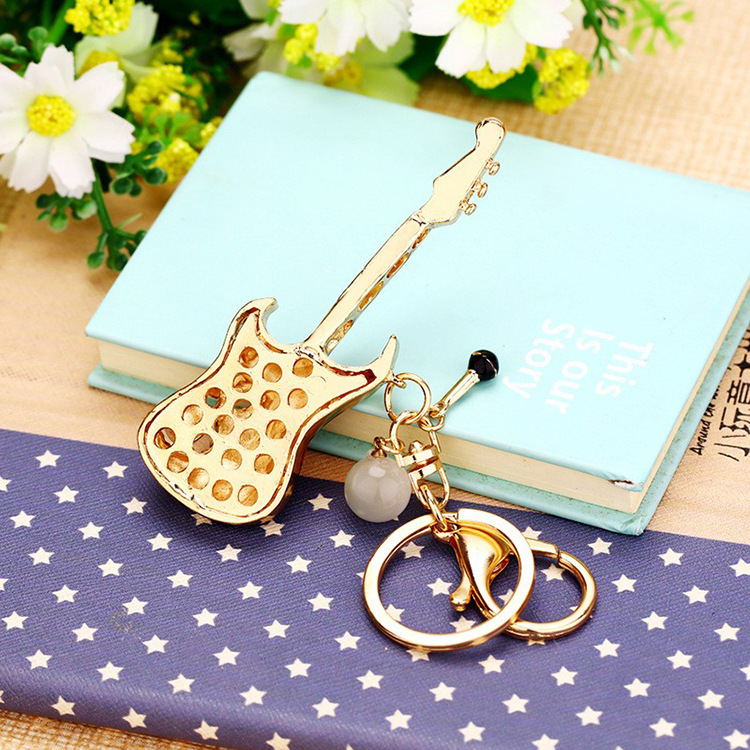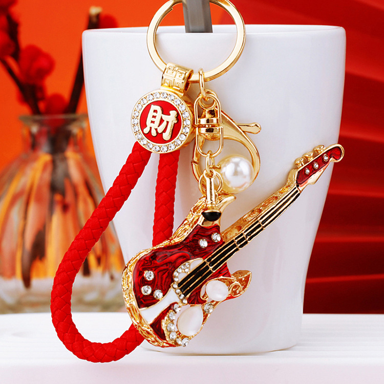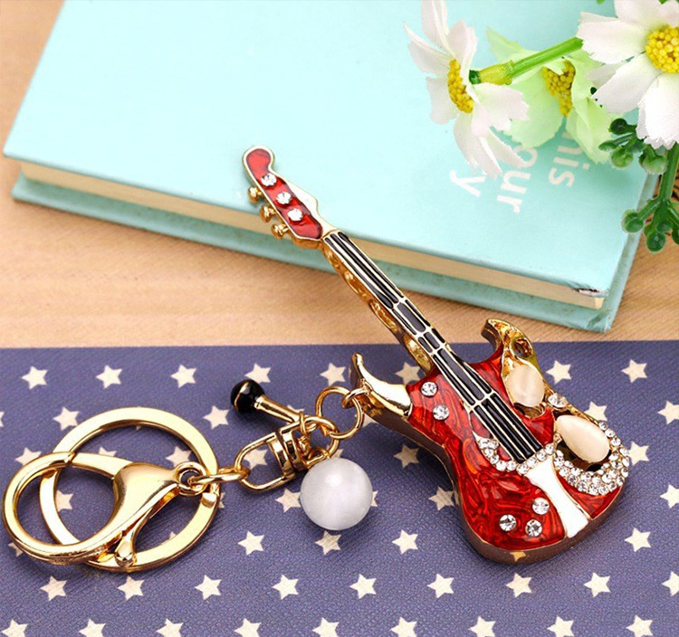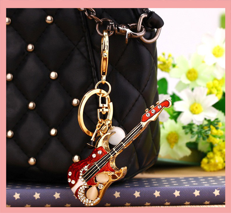 Details:Red Guitar Crystal Diamante Rhinestone Bag Charms Handbag Keyrings Pendant Key Chain