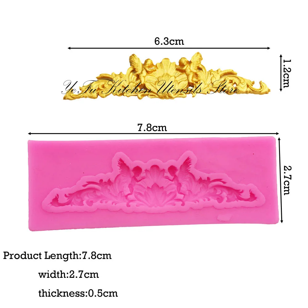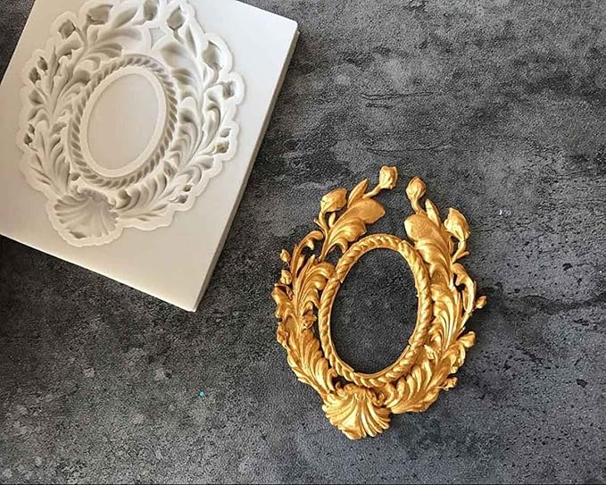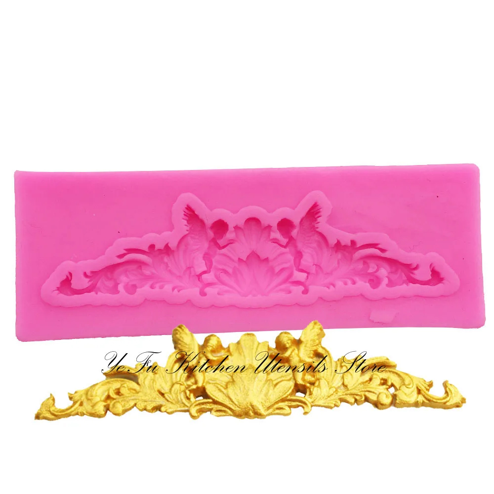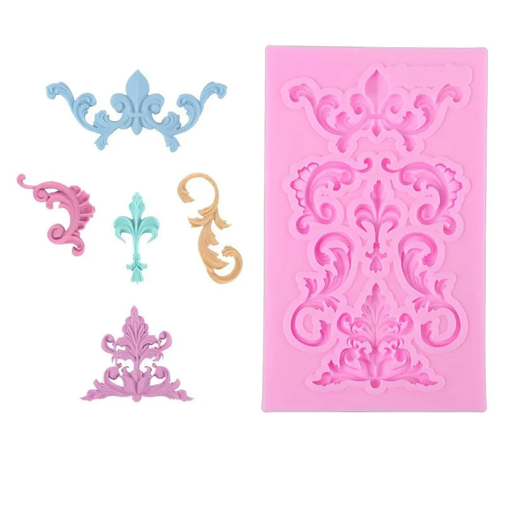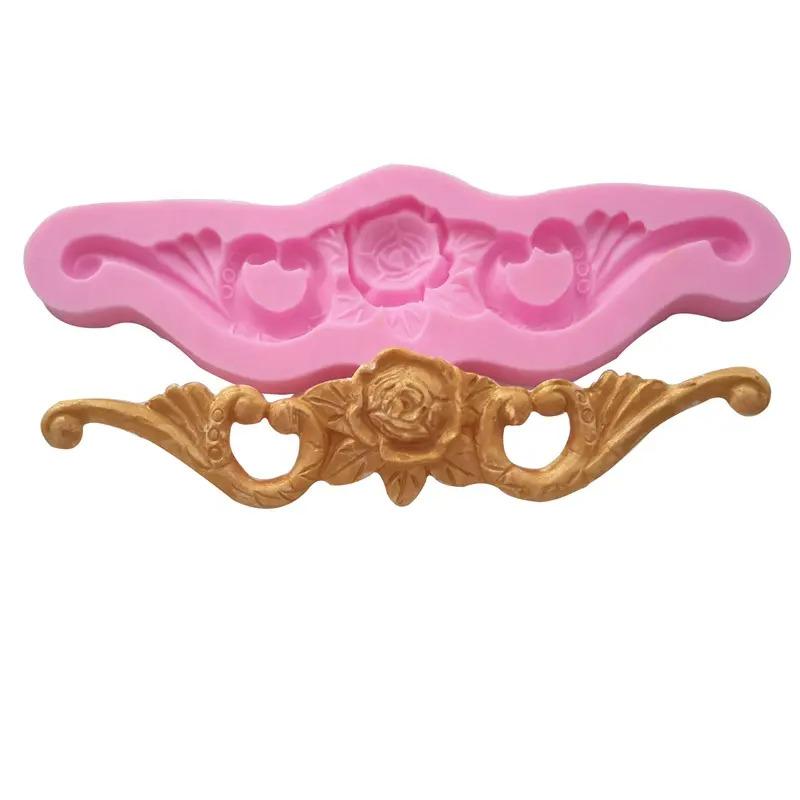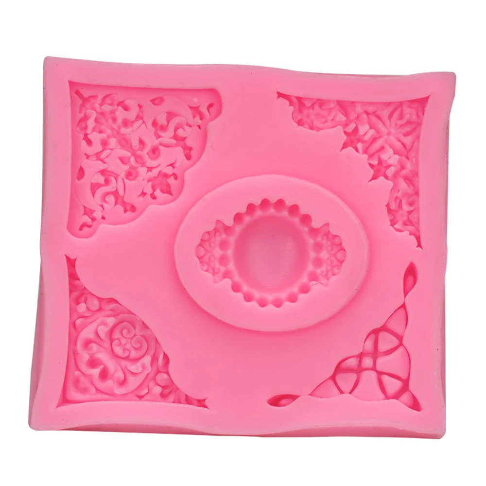 Relief Baroque Flowers Borders Frame Mold Embossing Silicone Sugarcraft Mould