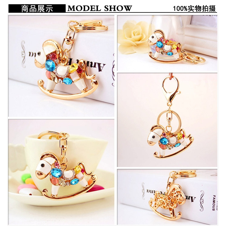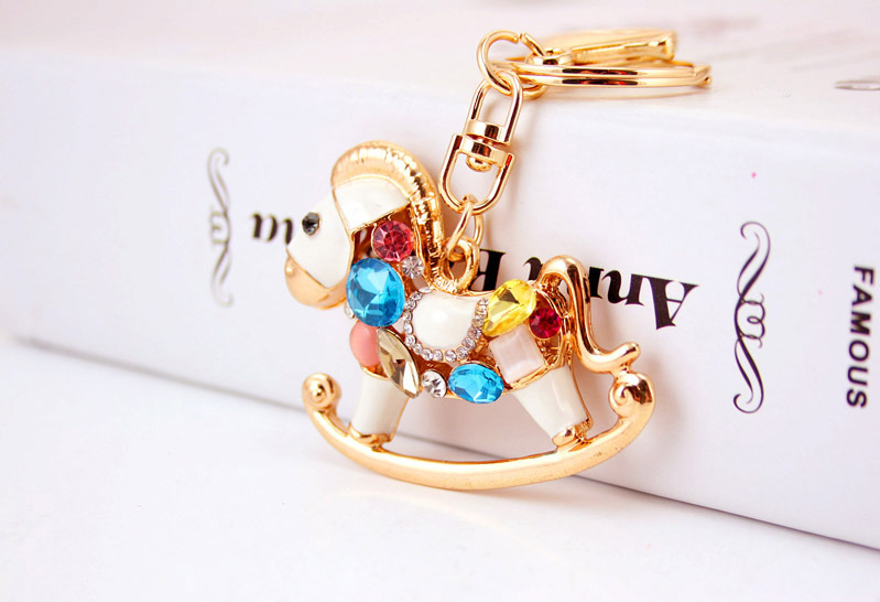Rocking Horse Sparkling Gemstones Rhinestones Bag Charm Handbag Pendant Keyring