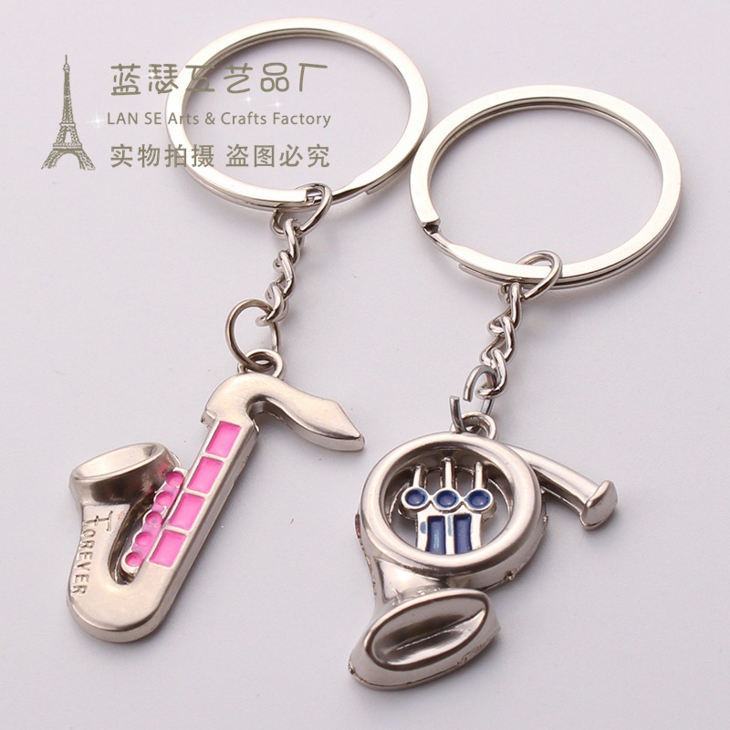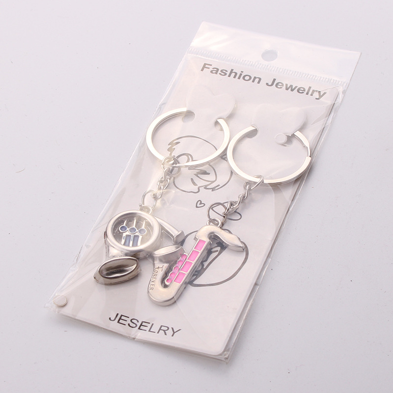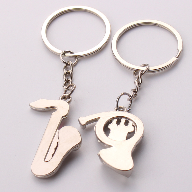 Details:Saxophone French Horn Love Forever Silver Metal Couple Keyrings Lovers Key Chains