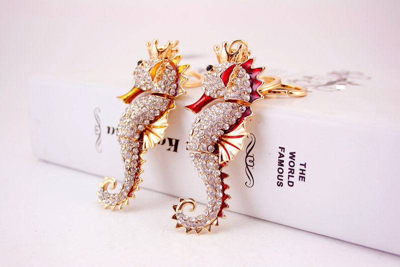 Seahorse Sea Life Animal Crystal Diamante Rhinestone Bag Charms Handbag Keyrings Pendant Key Chain