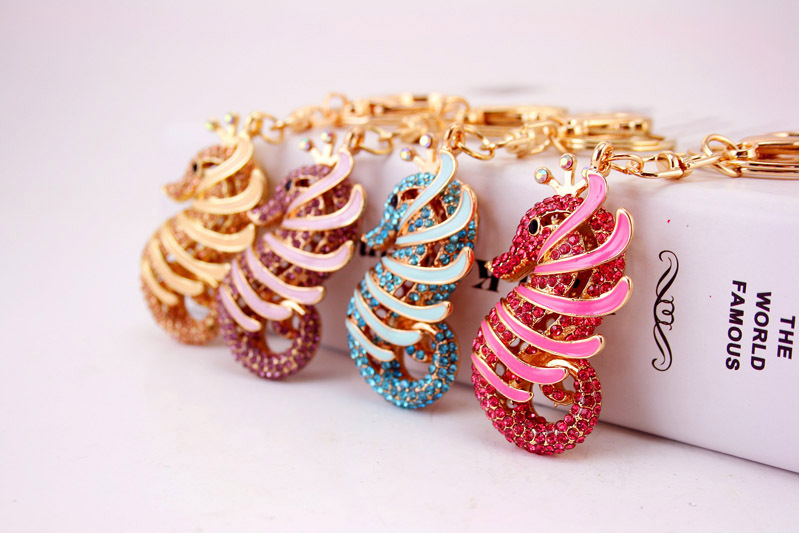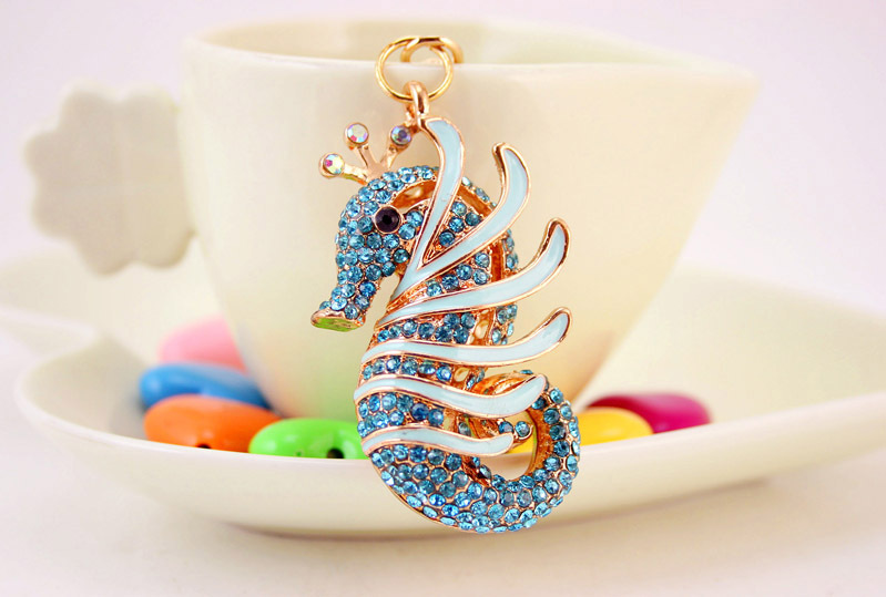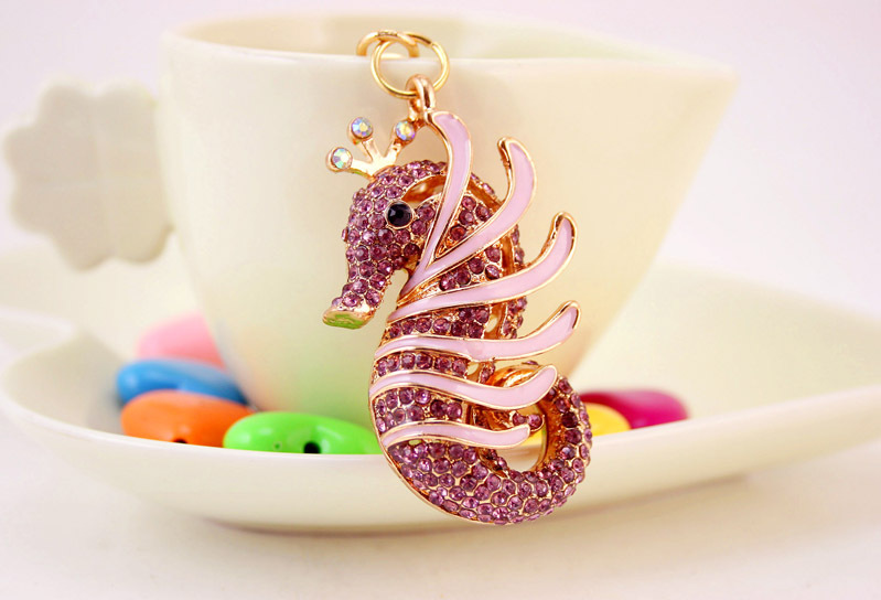 Details:Seahorse Sealife Animals Crystal Diamante Bag Charms Handbag Keyrings Pendant