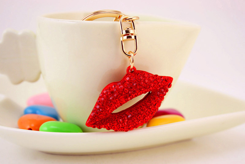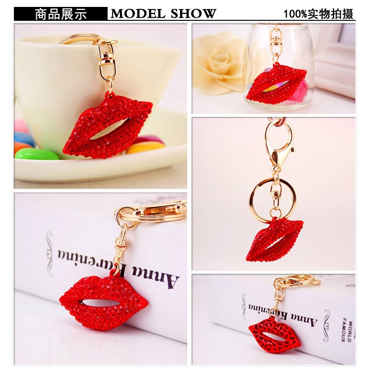 Details:Sparkling Diamante Rhinestone Red Lips Bag Charms Handbag Pendant Keyring Key Chain