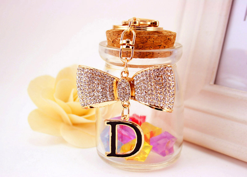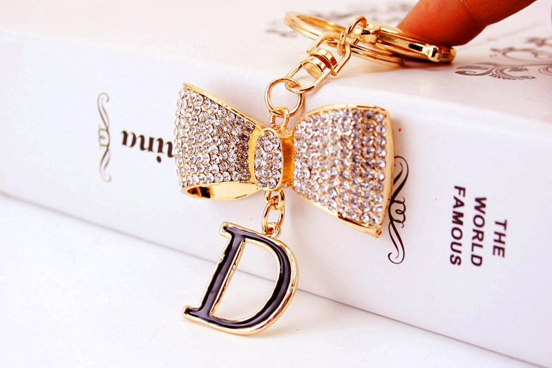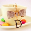 Sparkling White Bow Letter D Crystal Diamante Bag Charms Handbag Keyring Pendant