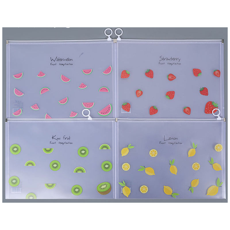 Summer Fruits Fashion A4 Plastic Document Wallets File Folders With Zipper