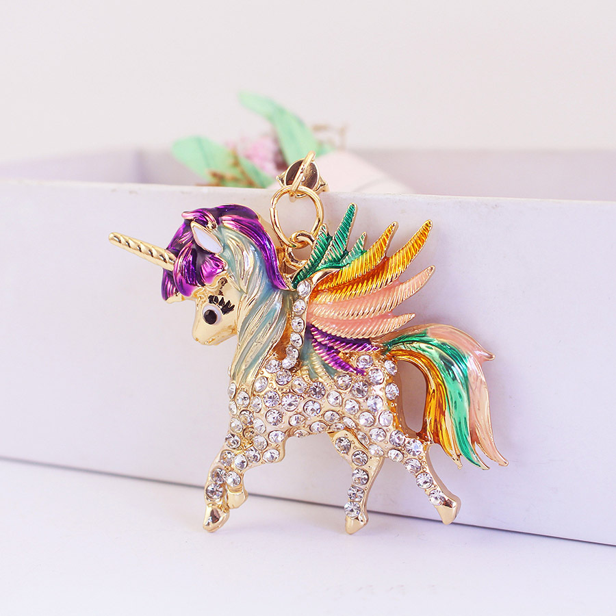 Unicorn Pegasus Winged Horse Crystal Diamante Bag Charms Handbag Keyring Pendant