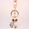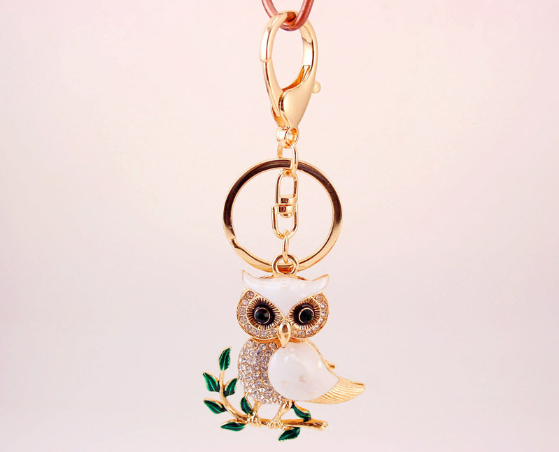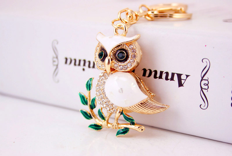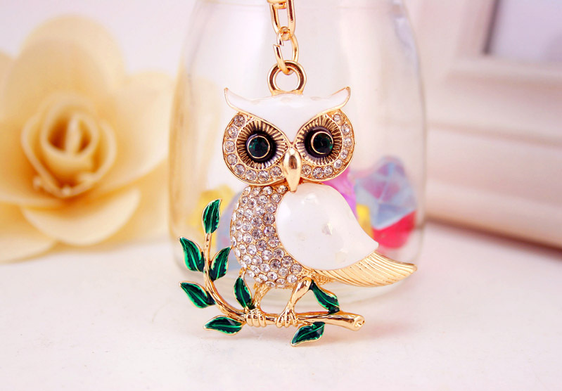 White Owl On Tree Crystal Diamante Rhinestone Bag Charms Handbag Keyrings Pendant Key Chain
