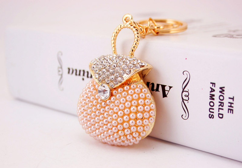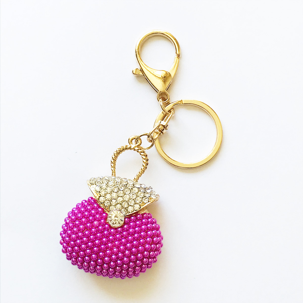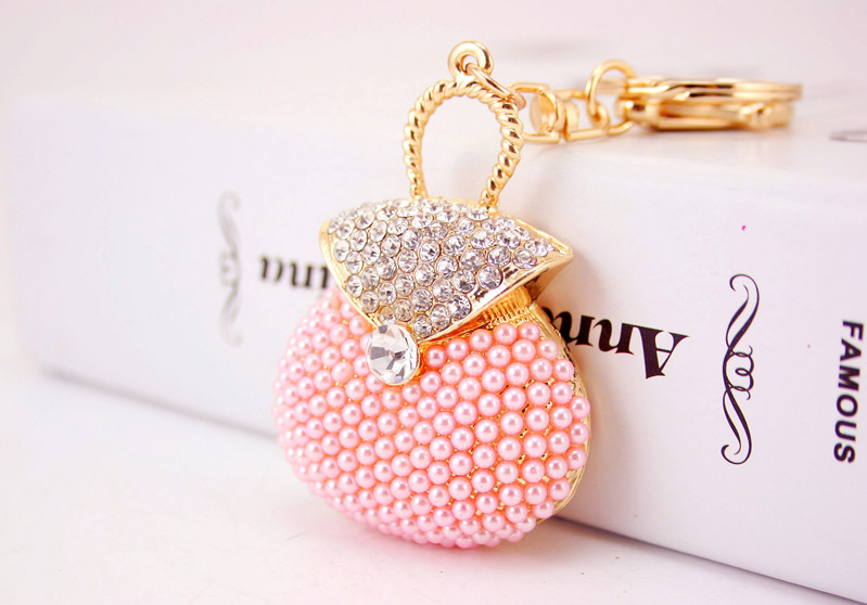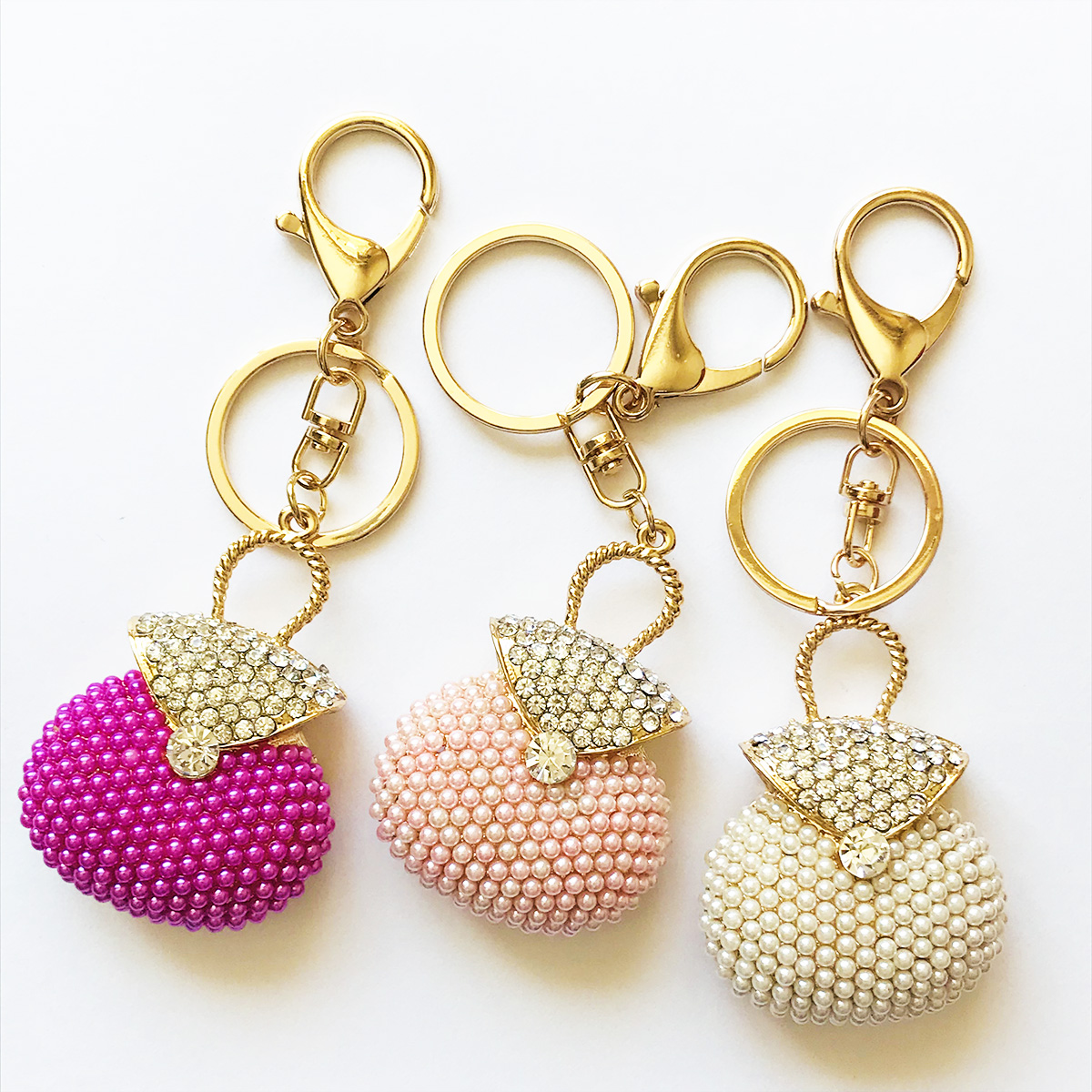 White Pearls Handbag Shaped Crystal Diamante Rhinestone Bag Charms Handbag Keyring Pendant Key Chain