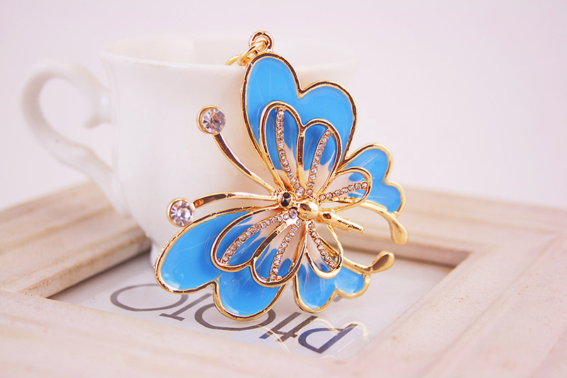 Details:White Pink Blue Butterfly Crystal Diamante Bag Charms Handbag Keyrings Pendant