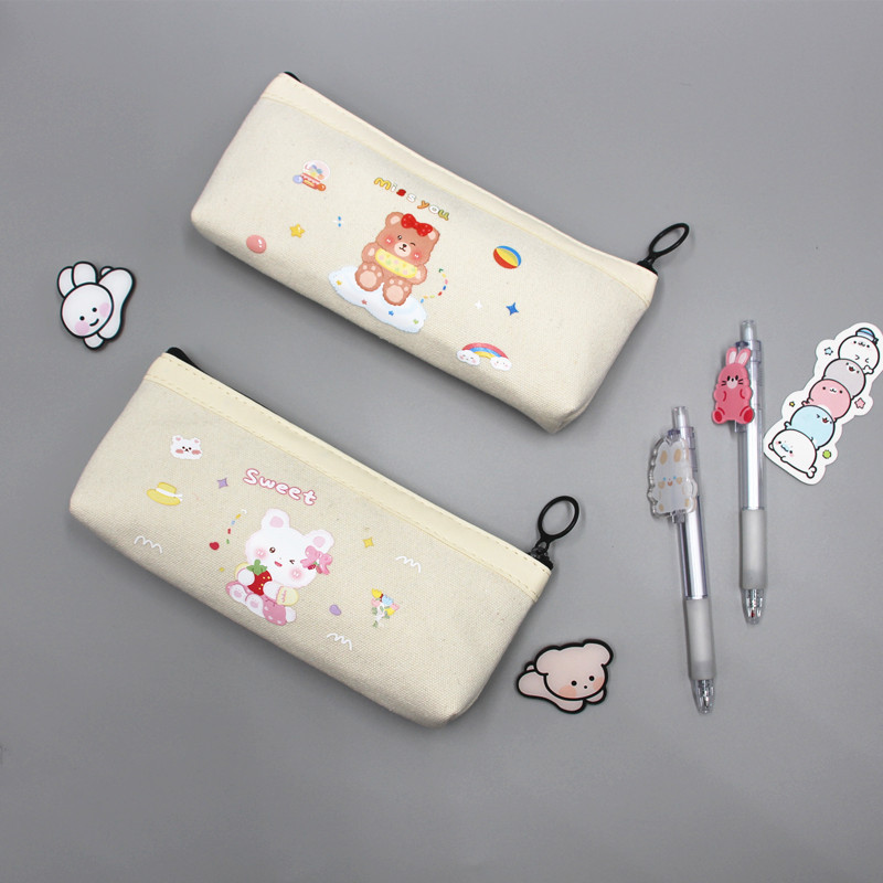 White Rabbit Bear Animals Cute Pencil Cases Cosmetic Makeup Bags Pen Pouches